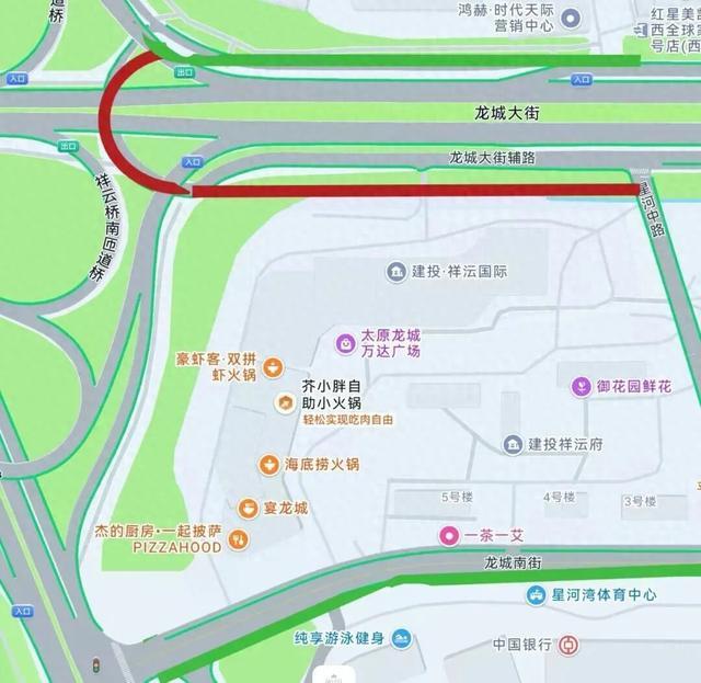 由滨河东路前往龙城大街方向的非机动车及行人可提前在龙城南街绕行。