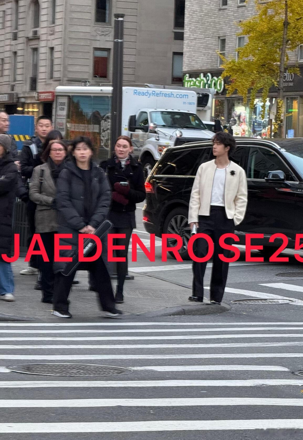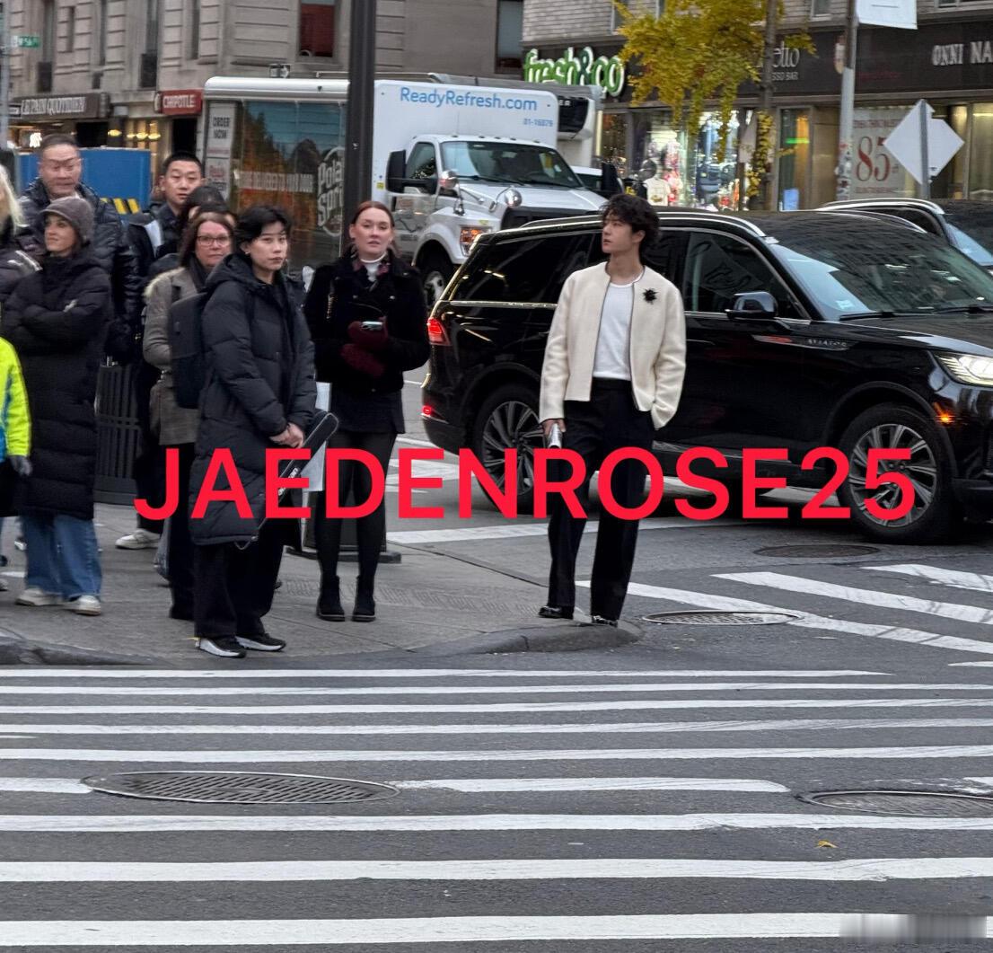 小王子出来炸街!就这么出现在纽约人群中好帅!对比旁边穿羽/绒服的人,穿春装的一博