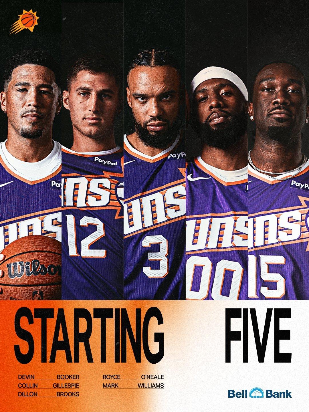 湖人首发:东契奇、里夫斯、八村塁、詹姆斯、艾顿太阳首发:布克、吉莱斯皮、奥尼尔、