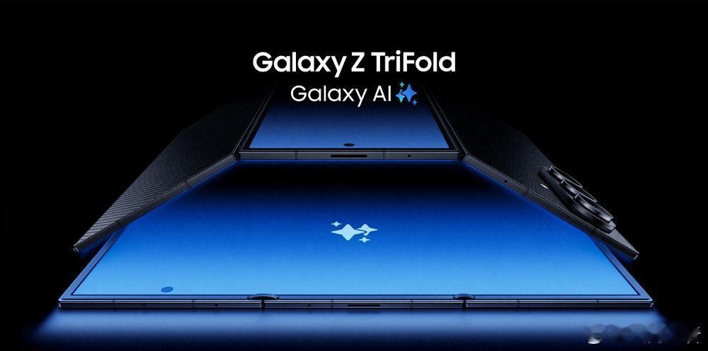 三星首款三折叠手机发布三星Galaxy Z Trifold正式发布- 外屏:6.5寸 2520*1080 Dynamic AMOLED 2X屏,1~120Hz自适应刷新率,采用康宁大猩猩玻璃陶瓷2材质- 内屏:10寸 2160*1584 Dynamic AMOLED 2X屏,1~120Hz自适应刷新率- 芯片:骁龙8至尊版 for Galaxy 处理器- 相机:内外屏前置10MP,后置200MP主摄+3X 10MP 长焦+12MP 超广角- 电池:5600mAh电池+45W有线+15W无线- 厚度:折叠状态厚12.9mm,展开后带SIM卡托一侧厚3.9mm、中央屏幕侧厚4.2mm、带侧边按钮侧厚4.0mm,重309g- 材质:后盖采用陶瓷玻璃纤维;钛合金铰链外壳、高级装甲铝框架- 其他:侧边指纹识别、蓝牙5.4、Wi-Fi 7,IP48防尘防水,搭载基于安卓16的One UI 8系统,双SIM卡槽+支持eSIM,三星首款支持独立DeX桌面模式的机型- SKU:仅黑色,16+512GB/1TB存储可选- 上市时间:预计12月9日开启线上多渠道预约- 售价:暂未公布三星三星