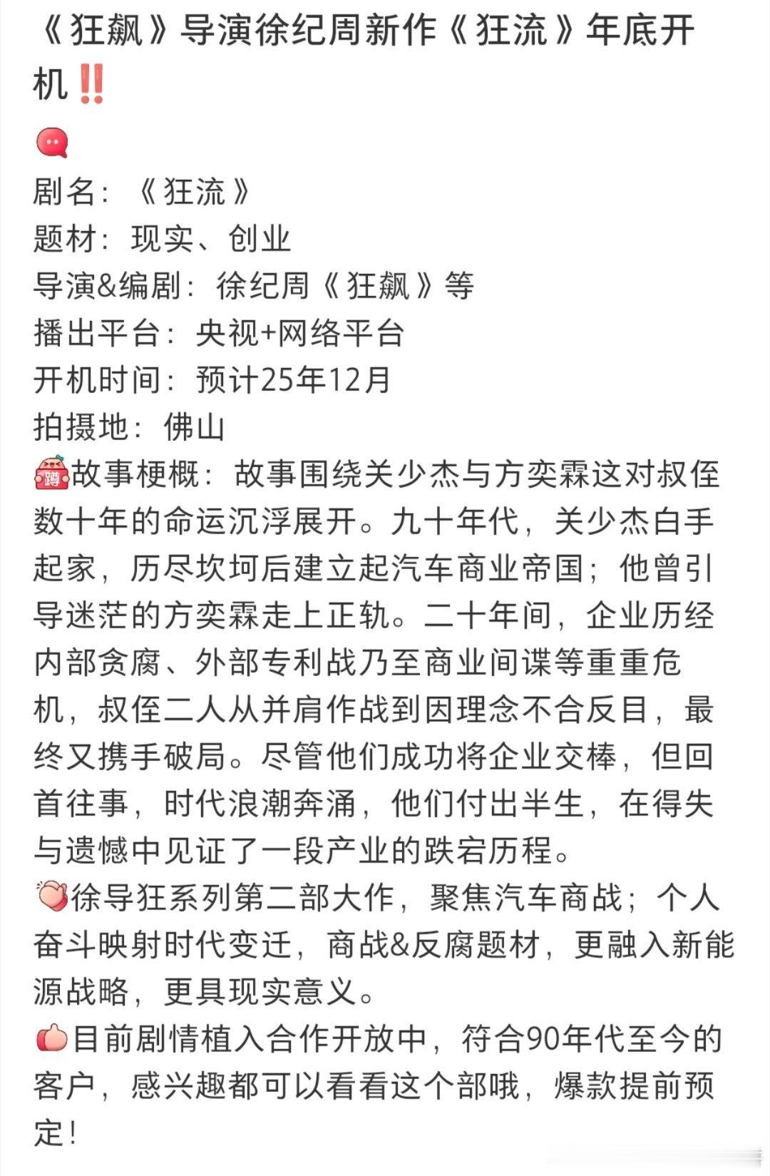大饼,王安宇、张颂文将合作《狂流》,导演是徐纪周(代表作《狂飙》)