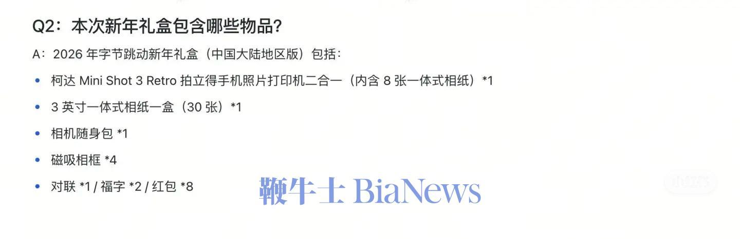 礼盒包含柯达MiniShot拍立得、相纸一盒、相机随身包、磁吸相框,另有对联+福字+红包。