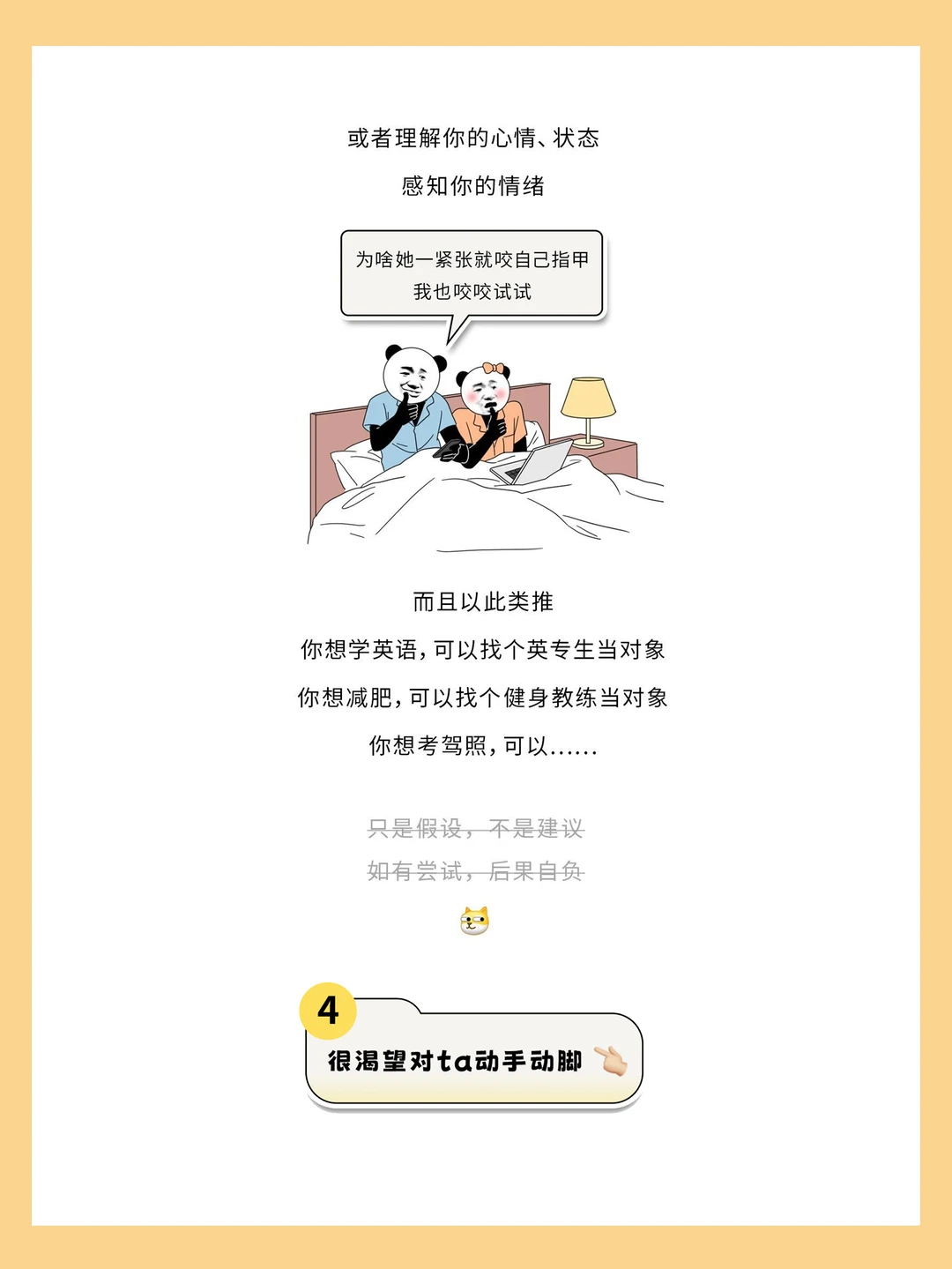 打住!我们今天说的生理性喜欢是你面对喜欢的人 会不自觉产生的一些奇怪行为比如:特别喜欢闻ta的味儿,没事儿就想咬ta-口,动不动就想对ta动手动脚