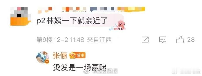 张俪 烫发是场豪赌 谁懂越活越年轻的快乐 [笑 cry]!张俪饰演的林喜柔 20 年前爆炸头,20 年后黑长直减龄翻倍,太惊喜!评论区的神回复,梗太会了! 枭起青壤