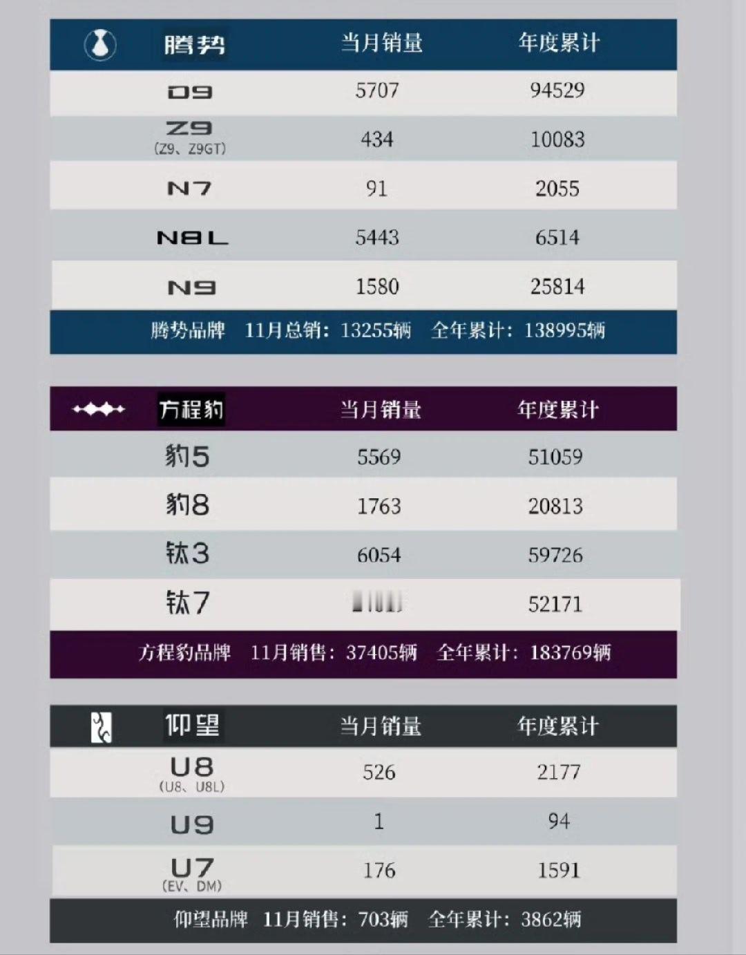 11月比亚迪各品牌车型销量明细,钛7太炸裂了,这可是单款车2.4万辆,均价20万