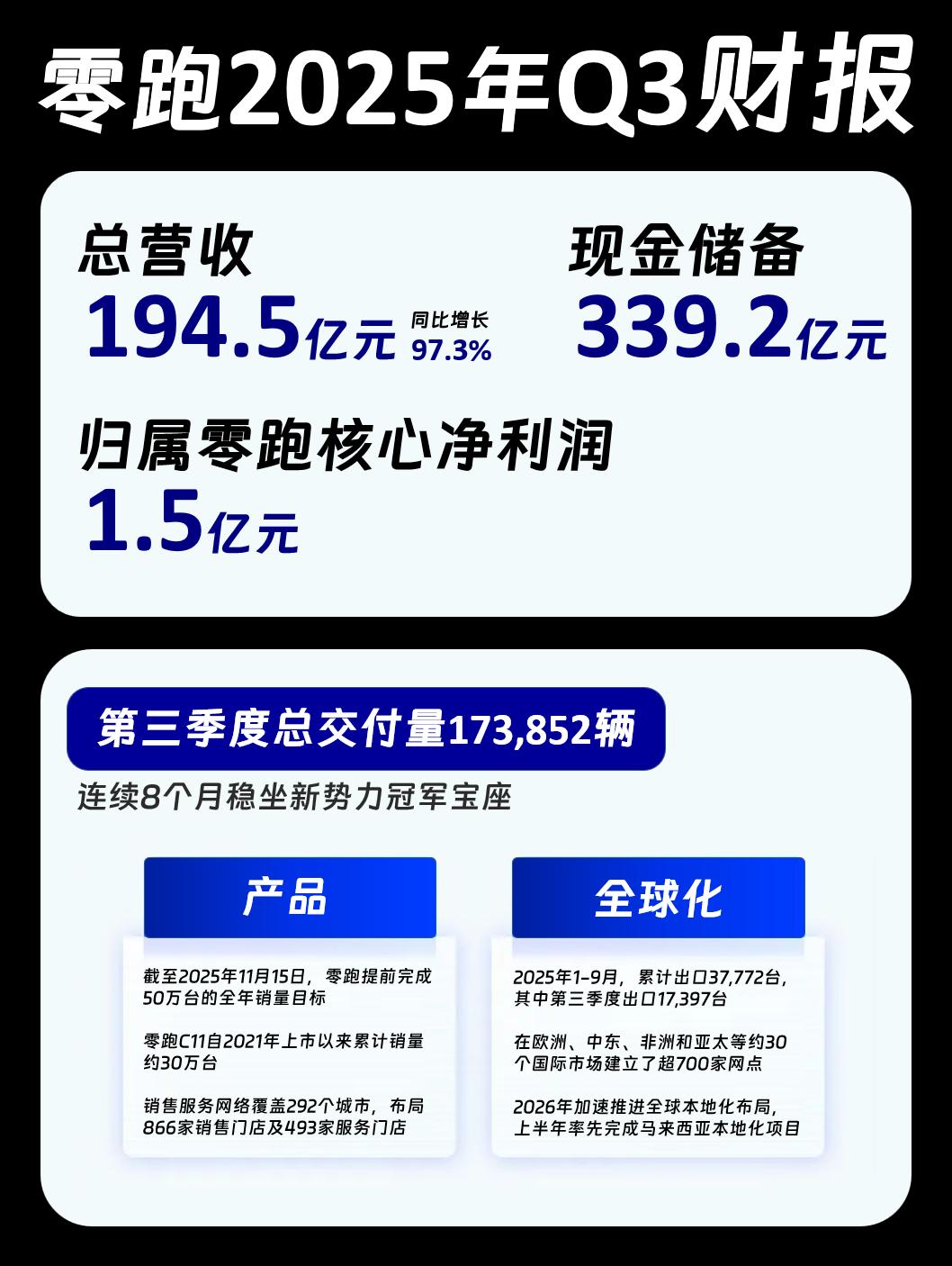 零跑梅开二度,11月再交付7万+! 昨天,各大厂商公布的11月份交付量大家都看到了吧,各家成绩可以说基本都不错,其中新势力的扛把子仍然是零跑,且梅开二度交付量再次突破7万,来到70327台,再次刷新新势力单一品牌月交付量纪录,这一成绩的取得可以说进一步巩固了零跑在新势力品牌中的领先地位。 如果还有人说零跑10月份突破7万是侥幸,那么11月份再来一次靠的就是实力。核心在于其清晰的战略路径和扎实的产品布局,如作为新势力中少数坚持“全域自研”战略的车企,自研自给率超过65%,构筑起了成本与技术的双重护城河。因此它在今年三季度实现连续季度盈利,达1.5亿元,财务状态很健康,也为后续的发展打下了基础。 而在产品上,零跑也用好而不贵精准满足用户需求,如20万内最值得推荐的新能源SUV之一C16,凭借冰箱彩电大沙发,8295芯片、激光雷达等越级配置,赢得了广大消费者的青睐,累计交付已突破10万台。 同时,零跑还借助“轻资产”出海模式,快速打开了全球市场,为零跑的销量开辟“第二战场”。 总之,零跑如今可谓是势不可挡,按照现在这个势头,再加上12月份零跑又有双十二“十亿好礼”活动,直接给到现金优惠,C16下定还有8000元现金红包,销量有望继续创新高。