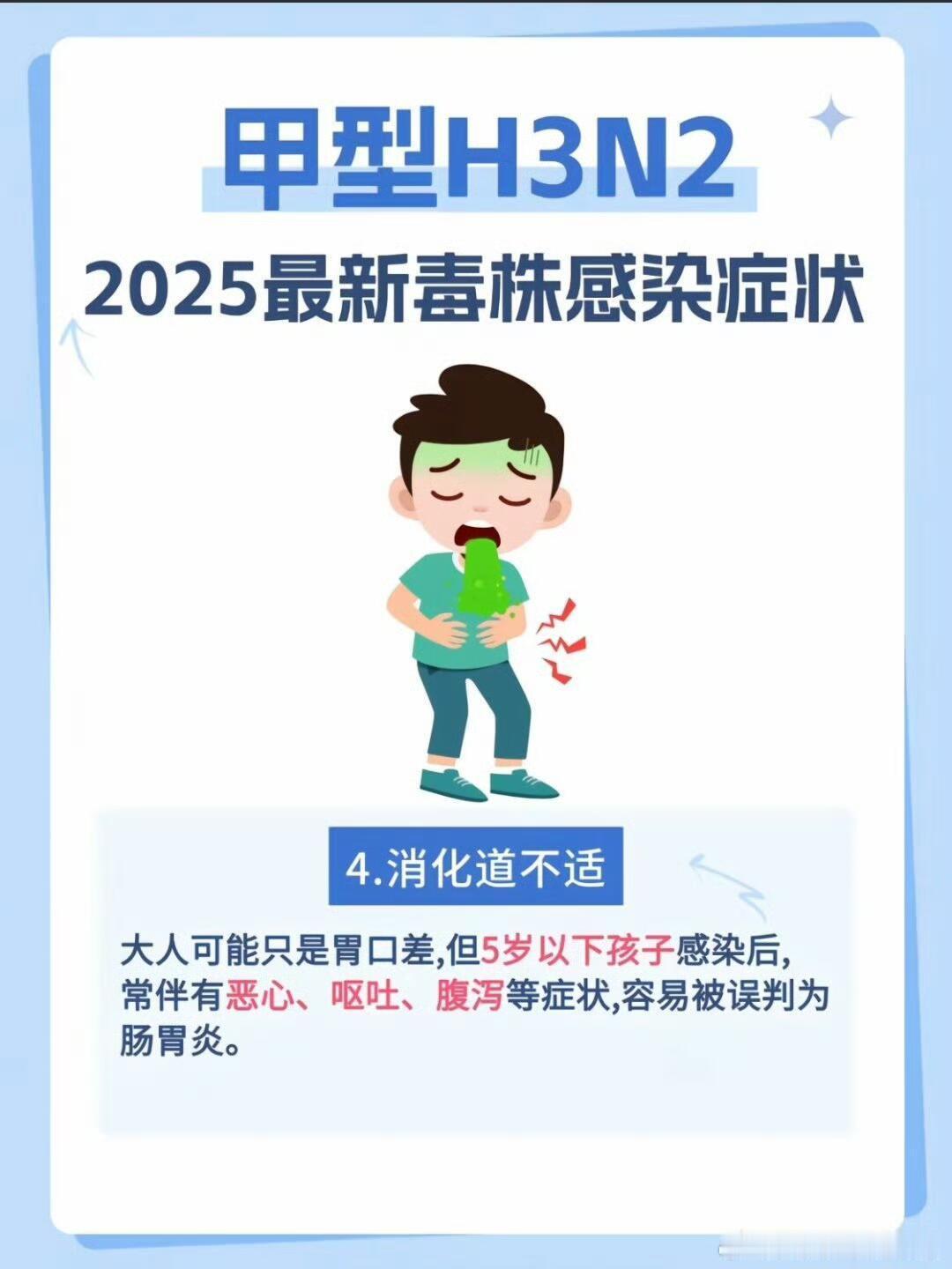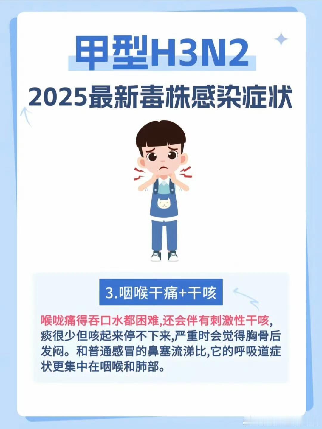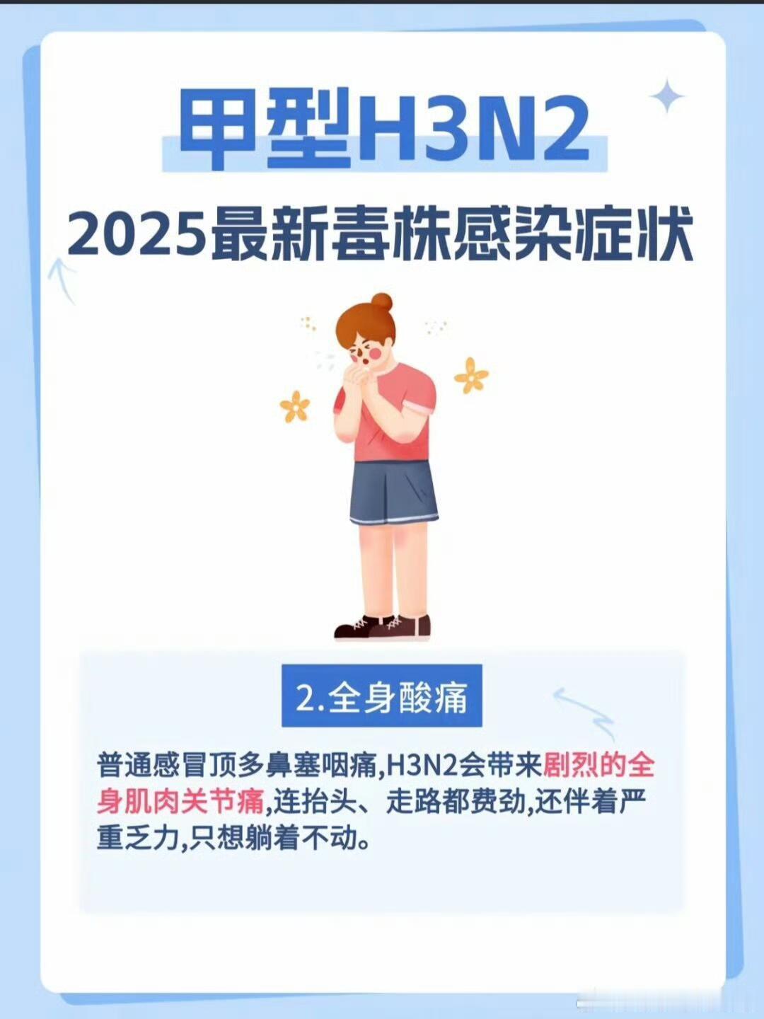 甲型H3N2毒株严重可导致呼吸衰竭当甲型流感毒株悄然侵袭下呼吸道时,肺泡上皮细胞的崩解可能让呼吸衰竭从医学术语变为高危人群的生命倒计时。流感主要是甲流病毒或者乙流病毒所引起的,可能会有更多的更重的全身的症状,类似于发烧、全身的肌肉酸痛,甚至可能会有一部分病人发展成肺炎,严重的患者可能还会出现呼吸衰竭、心肌炎,一部分重症流感的患者在流感感染期间还有可能会激发细菌的感染和真菌的感染。