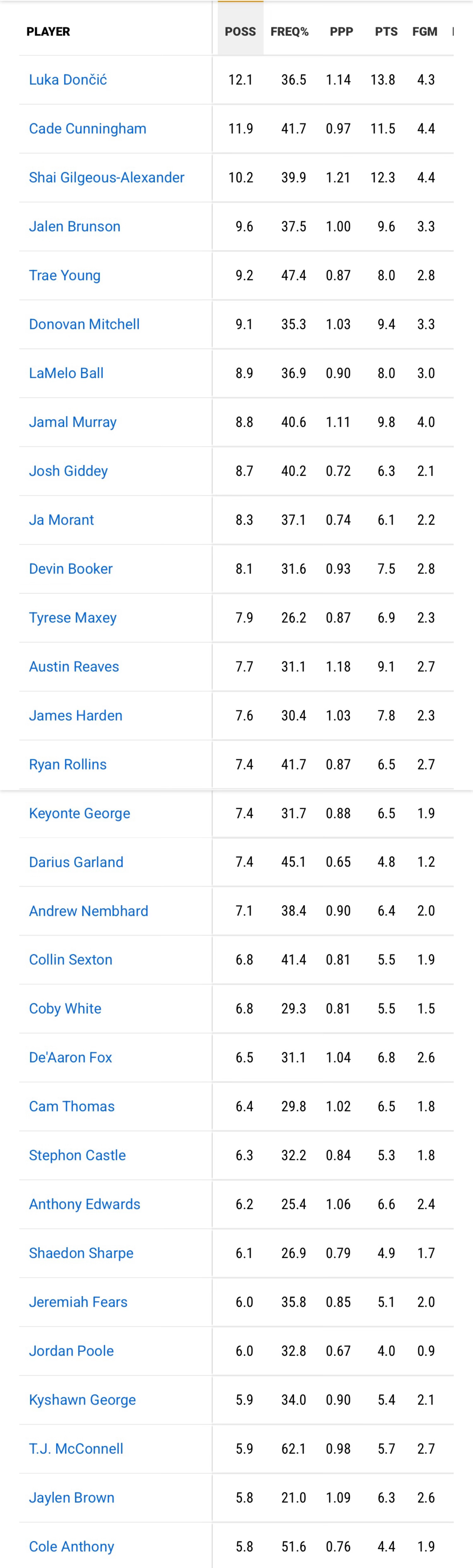 詹姆斯本赛季出战5场比赛,场均15.2分4板7.2助攻,命中率46%,三分31.8%。最近10场比赛,在湖人队内USG%(回合占有率)21.7%,东契奇35.6%,里夫斯25.3%。目前球权占比方面正在适应球队第三核心的角色。整个赛季从联盟数据来看Pick & Roll Ball Handler(挡拆持球人),东契奇场均接受挡拆12.1次,得到13.8分这两项数据都是联盟第一。接受挡拆回合数7次以上的球员在效率方面,里夫斯(1.18)是仅次于亚历山大(1.21)排名联盟第二,东契奇第三(1.14)。湖人在连胜期间,东契奇和里夫斯为球队做的贡献是不错的。老詹没有过于掌控球权,可能需要更多比赛融入球队化学反应,到时候再给足球权。加油⛽!