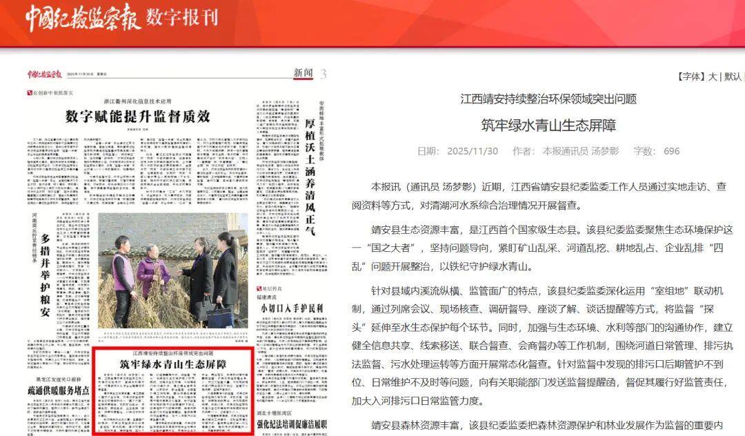 靖安县生态资源丰富,是江西首个国家级生态县。该县纪委监委聚焦生态环境保护这一“国之大者”,坚持问题导向,紧盯矿山乱采、河道乱挖、耕地乱占、企业乱排“四乱”问题开展整治,以铁纪守护绿水青山。