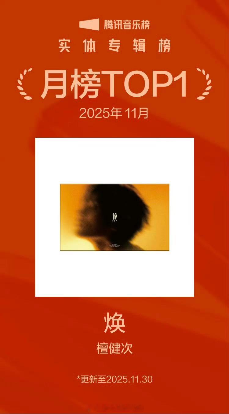 檀健次 《焕》夺得腾讯音乐实体专辑月榜第1️⃣