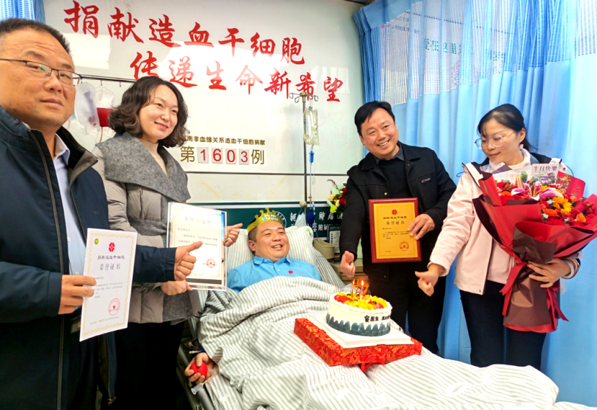 “这是我收到的最珍贵生日礼物——一名素不相识的血液病患者重生的希望。”12月2日,在河南省肿瘤医院造血干细胞采集室内,39岁的临颍县人民医院中医科医生窦志锋望着鲜红的血液在采集管中缓缓流动,脸上洋溢着温暖的笑容。这一天既是他的生日,也是他正式捐献造血干细胞、为一名陌生血液病患者点燃生命之火的日子。漯河市红十字会与临颍县红十字会专程送来生日蛋糕与鲜花,向这位“生命使者”致以崇高敬意。
