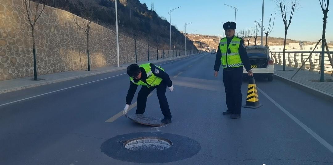 【窨井盖移位险象环生!清水河交警紧急处置,筑牢群众 “脚下安全” 防线】2025 年 12 月 2 日,清水河县公安局交管大队一中队民警在平安街工人文化宫东 200 米处巡逻时,发现一口窨井盖脱离原位横置路中,井口完全暴露(该路段曾因井盖问题引发车辆严重受损事故)。民警当即行动,迅速将井盖复位固定,在周边摆放警示标志划定防护区域,引导车辆减速避让。为从源头消除隐患,民警同步联系路权所属部门通报情况,督促开展全面检查维修并建立长效管护机制。下一步,交管部门将加密重点路段巡逻频次,坚持隐患 “早发现、早处置”,强化部门协同联动,全力保障辖区群众通行安全。