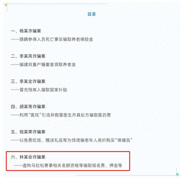 近年来马拉松活动日益普及,但相关赛事管理尚不够完善,使诈骗分子有机可乘。被告人林某会以通过其报名可确保获取马拉松参赛资格等优待为诱饵在网上实施诈骗。林某会的行骗手段并不复杂,却能在短时间内诈骗10余名被害人巨额钱财,主要是利用其在马拉松赛事圈内的知名度轻松获取被害人的信任,并利用网络社交平台使其发布的虚假信息得以快速广泛传播。人民法院通过依法惩处这类犯罪,不仅维护了被害人的财产利益,也净化了体育赛事领域风气,有力助推健康中国建设。该案提醒广大人民群众,在参加兴趣交流等社交活动中,要警惕他人利用“圈子”信任行骗;各类活动、赛事主办方,要加强官方宣传和风险提示,保证活动规则公开、透明,不给不法分子以可乘之机。