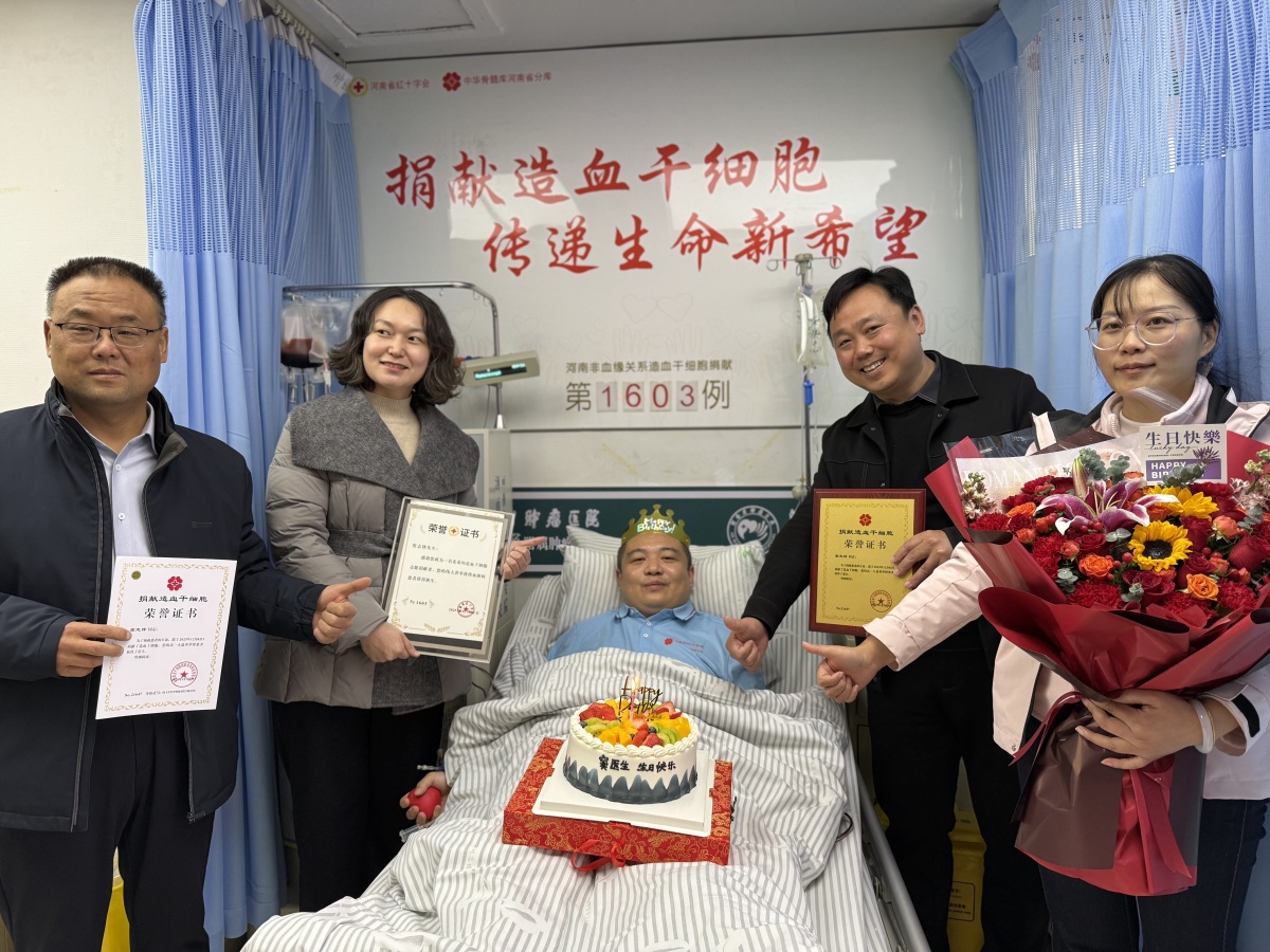 根据患者病情需要,捐献定于12月2日进行。这天,刚好是窦志锋的生日。红十字会的工作人员除了送上鲜花、荣誉证书之外,还特意为他准备了生日蛋糕。
