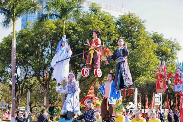 其中,湛江吴川飘色惊艳亮相,呈现《六国封相》《龙凤呈祥》《哪吒》等经典剧目,赢得观众阵阵喝彩。