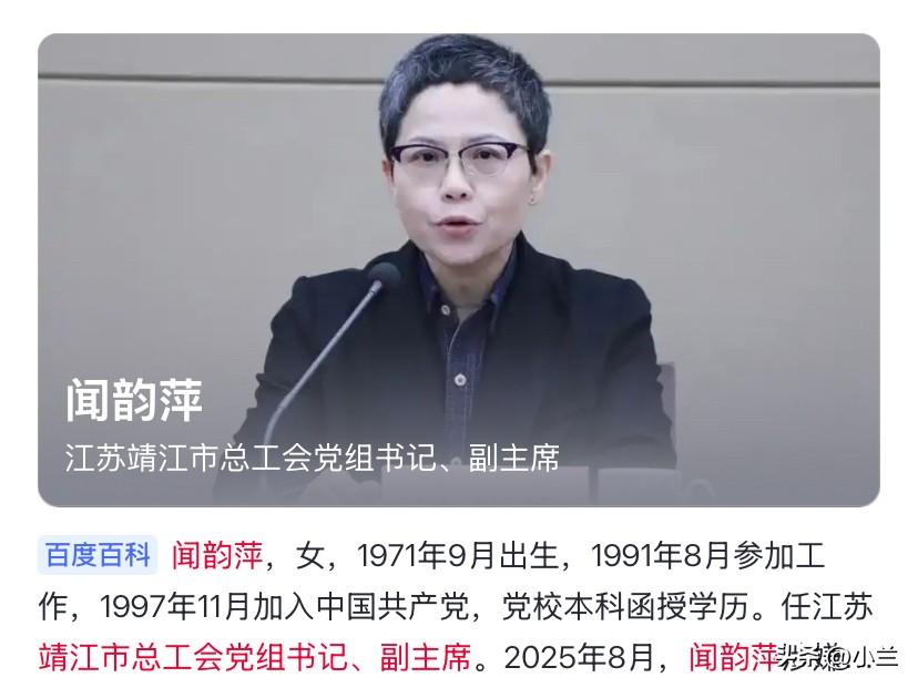 今天江苏靖江的闻韵萍又上了热搜 她是出生在1971年,1991年开始了工作 她这三十多年基本上都在靖江工作 她的工作经历十分的丰富 曾在靖江当过不少重要岗位 她今年还在54岁 本可以再过个四五年就能安稳退休 没成想如今却上了热搜 实在是令人唏嘘 这也表明了 要是做了不该做的事 都要为自己的行为付出代价的!