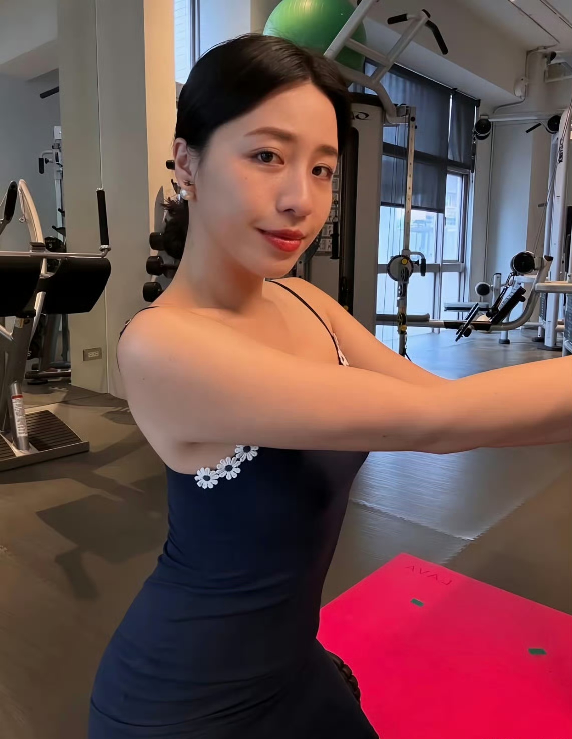 健身后的甜美自拍,花边背心搭配运动风,元气满满!💪🌸