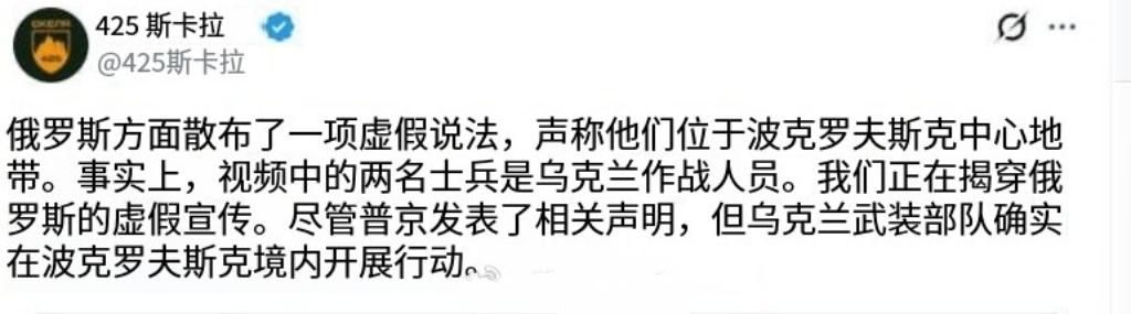 笑死,果然乌军的赢赢赢永远只存在于互联网上,这回从P图直接升级为P视频了。 即使是俄新社全程跟拍,画面中举旗的士兵全副俄军迷彩军装和装具。 仍不足以软化乌克兰的嘴壳子。 乌军425“斯卡拉”突击团官号不仅发声明说那是乌军士兵,并且把俄军在红军城(波克罗夫斯克)行政中心插旗视频的俄军手中旗P成了乌克兰国旗。 话说好歹把兽人也P成乌克兰人啊。 乌军425“斯卡拉”突击团官方账号AI夺回红军城市中心的视频,甚至连Deep State都看不下去了,挺身而出揭穿了425使用AI生成造假...... 毕竟即使在DS的地图中,红军城绝大部分特别是插旗地的市行政中心大楼区域也是丢了的....... 在425造假视频中,左手举旗的俄军士兵被AI换脸成了另一个人,但依然是俄军着装,背景中出现了原视频没有的汽车。 遭到各国网友无数大巴掌招呼后,脸肿成猪头乌军425“斯卡拉”突击团官号@425 Skala 已经删除了造谣的帖子。 #俄乌冲突#