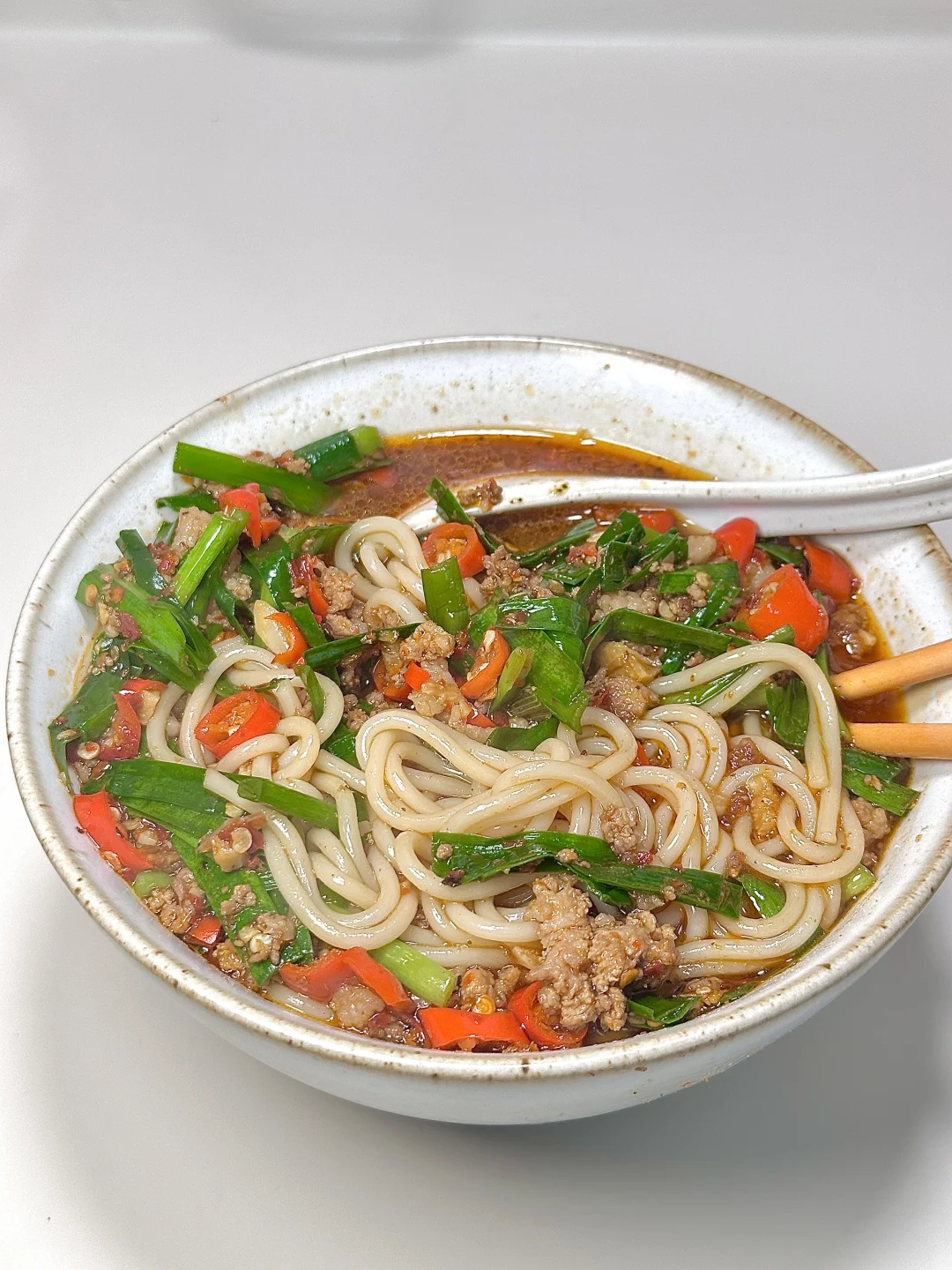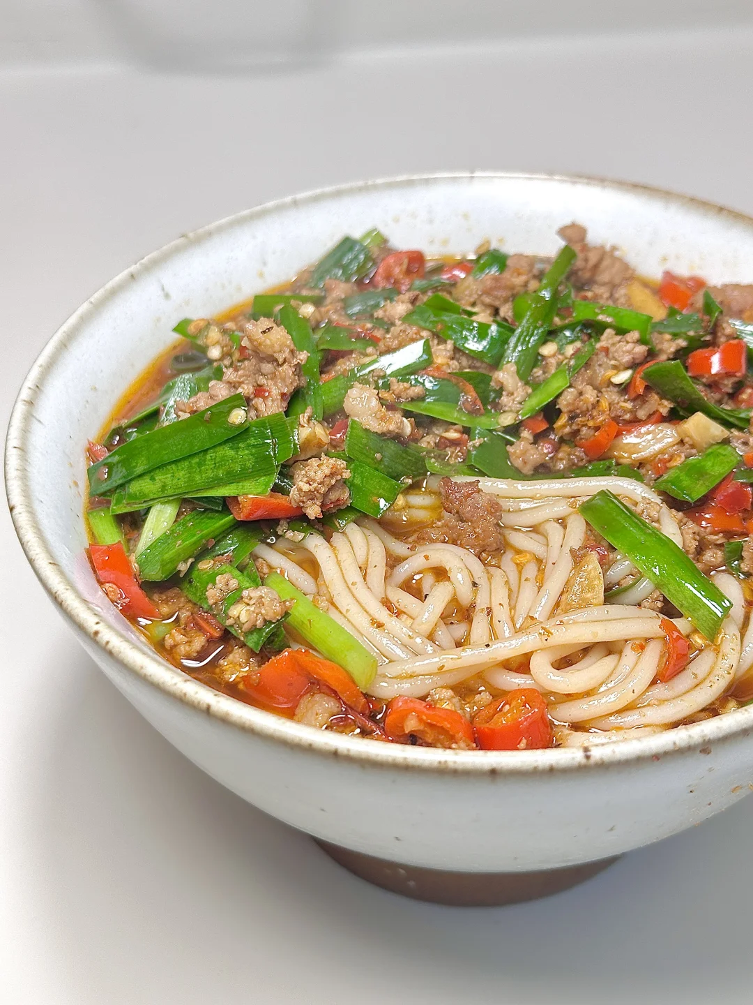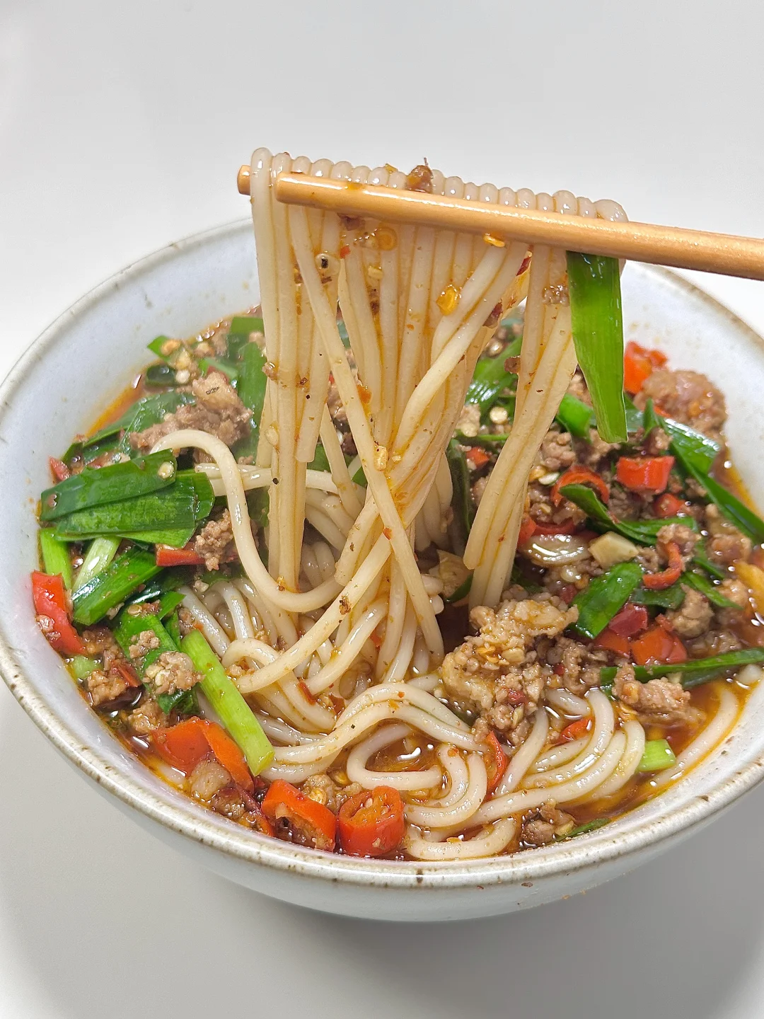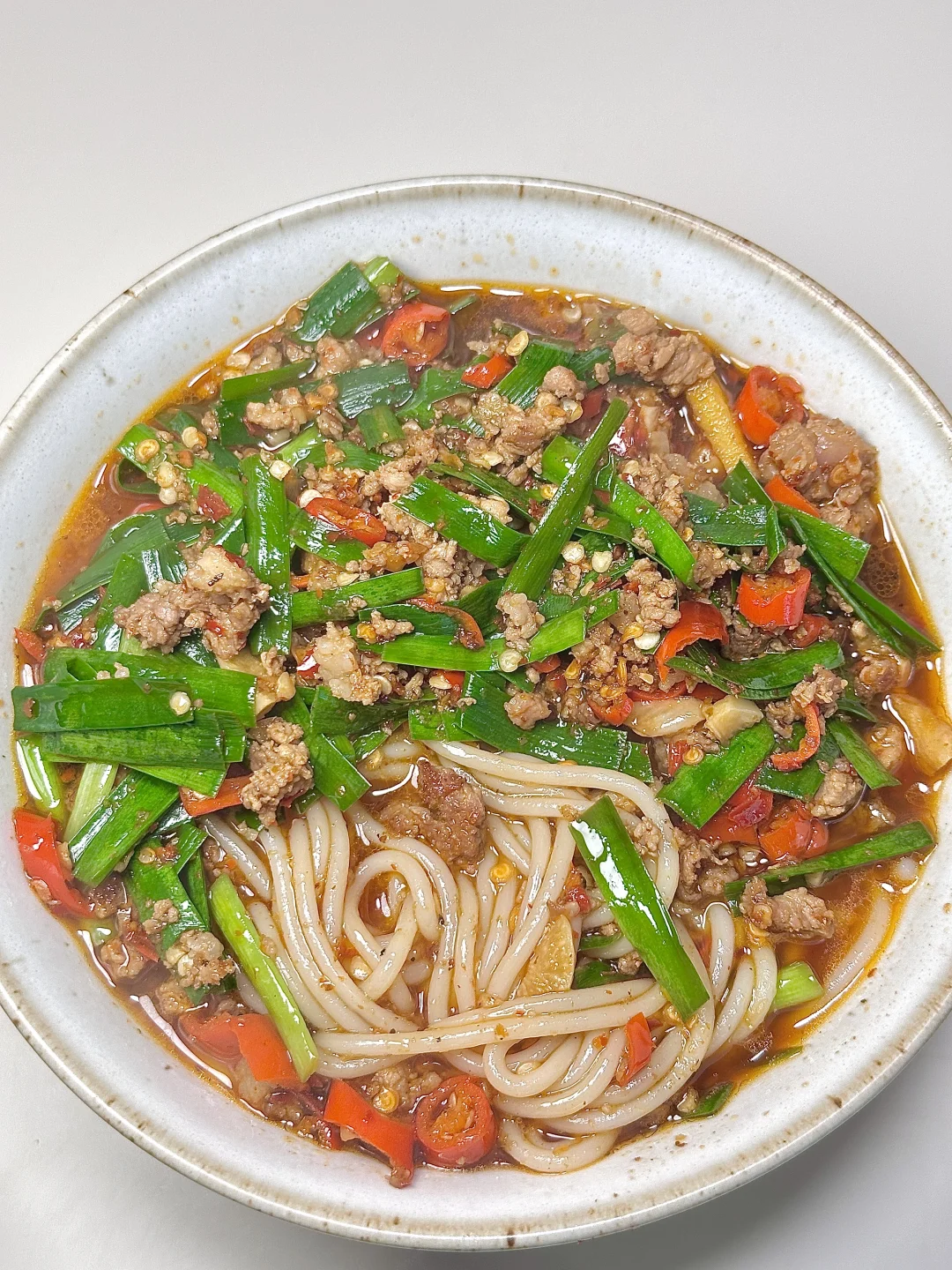 江西腌粉 天热不想做饭 来一碗 香香辣辣的 太好嗦了,吃不腻~的三餐四季 ✨食材:米粉 韭菜 肉沫 姜蒜末 小米椒 辣椒粉 1️⃣:锅里水烧开放米粉煮5分钟。盖盖泡20分钟左右,煮熟后捞出来冲洗两遍沥干水份备用。锅里倒油放肉沫炒两分钟,推到一边下姜蒜 辣椒 辣椒粉炒香炒出红油。 调味加一铲子生抽 一丢酱油,蚝油炒香。倒入一碗水煮开 加一丢鸡精中火煮一会,起锅前放韭菜 好好吃饭呀🖖🏻