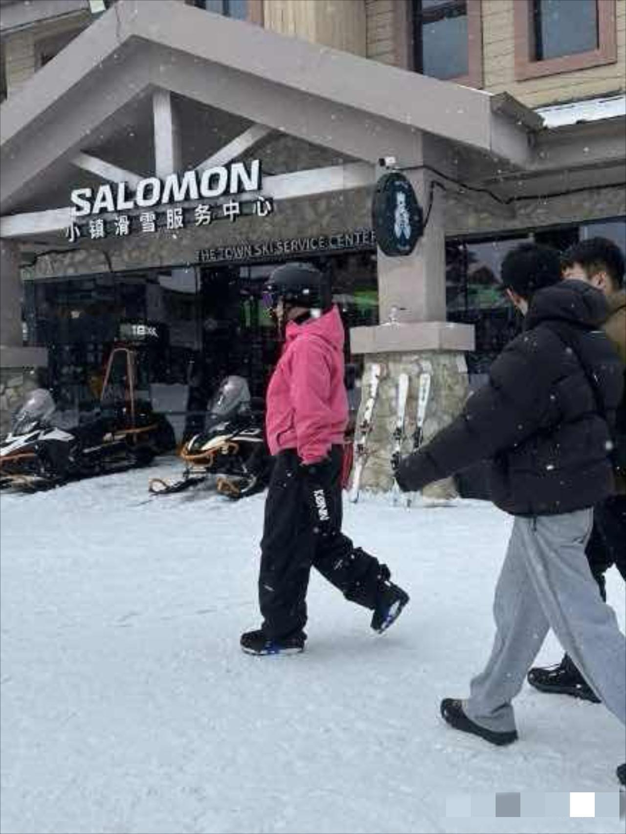 镜头中身穿粉红外套的李晨皮肤松弛,略显发福,眼袋深刻,法令纹清晰,下巴前倾,鼻头