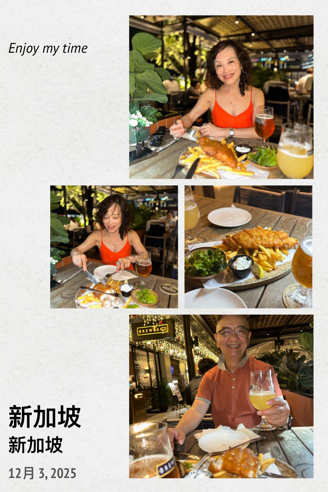 打着飞的去新加坡打卡[偷笑]先生90年代曾随公司来过这里学习参观,如今又陪我来一趟[呲牙]继续着美景、美食的体验,遇到太多心地善良的好人[碰拳][碰拳][玫瑰][玫瑰][玫瑰] 樟宜机场拍照打卡,又美餐了一顿客家饭,半只盐焗鸡(现焗现烤,太香了)每人一盅排骨汤(里面满满的瘦肉方块,汤汁不见香料,很清澈、很鲜)干拌面一下肚感觉回到了成都[偷笑] 晚上中心风景区结束打卡,就在此浪漫一回,点了不同的啤酒,第一次吃到如此美味的海鲜,在这里钱就是纸,可我们会永远难忘[呲牙][祈祷][比心]
