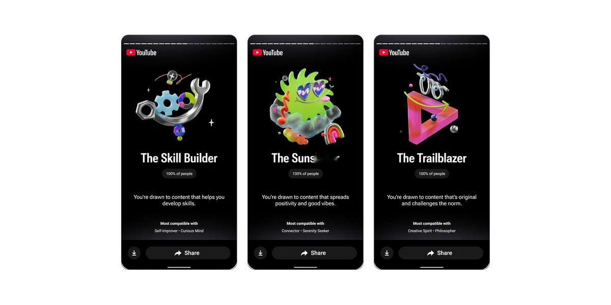 【YouTube Recap 今日在移动端和网页端推出】从今天开始,YouTube Recap 功能将使用你过去一年的观看记录生成最多 12 张卡片,突出显示你最喜欢的频道、主题和观看习惯等内容。卡片形式的灵感来源于 Spotify 的音乐回顾功能 Spotify Wrapped。YouTube Music 推出了自己的版本,并于上周开始上线。但 YouTube 社区人士,例如 Hank Green 和 Marques Brownlee,一直在呼吁 YouTube 为视频推出相同的功能。YouTube Recap 会根据你的观看记录,以独特的方式突出显示你今年的兴趣、深度探索和精彩瞬间。你将获得最多 12 张不同的卡片 ,重点展示你最喜欢的频道、兴趣,甚至是你观看习惯的演变,或者根据你喜欢观看的视频,分析你属于哪种性格类型!如果你“今年听了很多音乐”,YouTube 上的 “Recap” 视频还包含音乐。YouTube 表示,“Recap” 功能从今日起在北美地区首先推出,并将于本周内根据语言等因素在全球范围内推出。该功能将在移动端的“首页”或“我”标签页中显示,而桌面端则可在个人账户可用时访问 youtube.com/recap 查看。移动端用户需要将 YouTube 版本更新至 18.43 或更新版本(Android 和 iOS 系统均适用)。