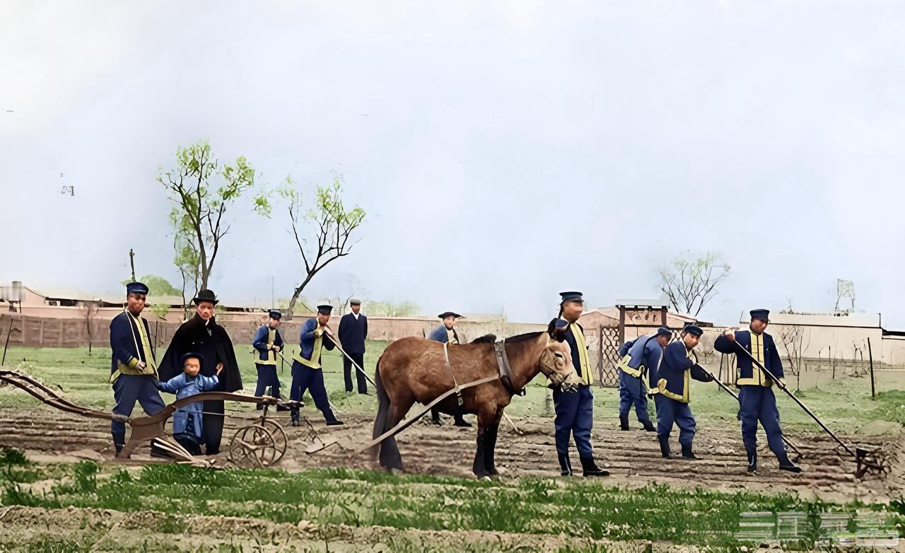 这是清末直隶农务学堂师生在试验田实践的日常画面,田间的师生们分工协作,有人牵引农具、有人照料耕畜,犁具与忙碌的身影交织,生动还原了这所近代农业学堂“知行合一”的办学特色。 1902年,时任直隶总督袁世凯奏请清廷,在保定设立直隶农务学堂,是近代中国较早的农业专门学堂之一。初期开设农业、蚕桑两科,为推广近代农业技术、吸引人才,学堂实行“公费制”:学生免缴学费,还由校方包揽伙食费与住宿费。