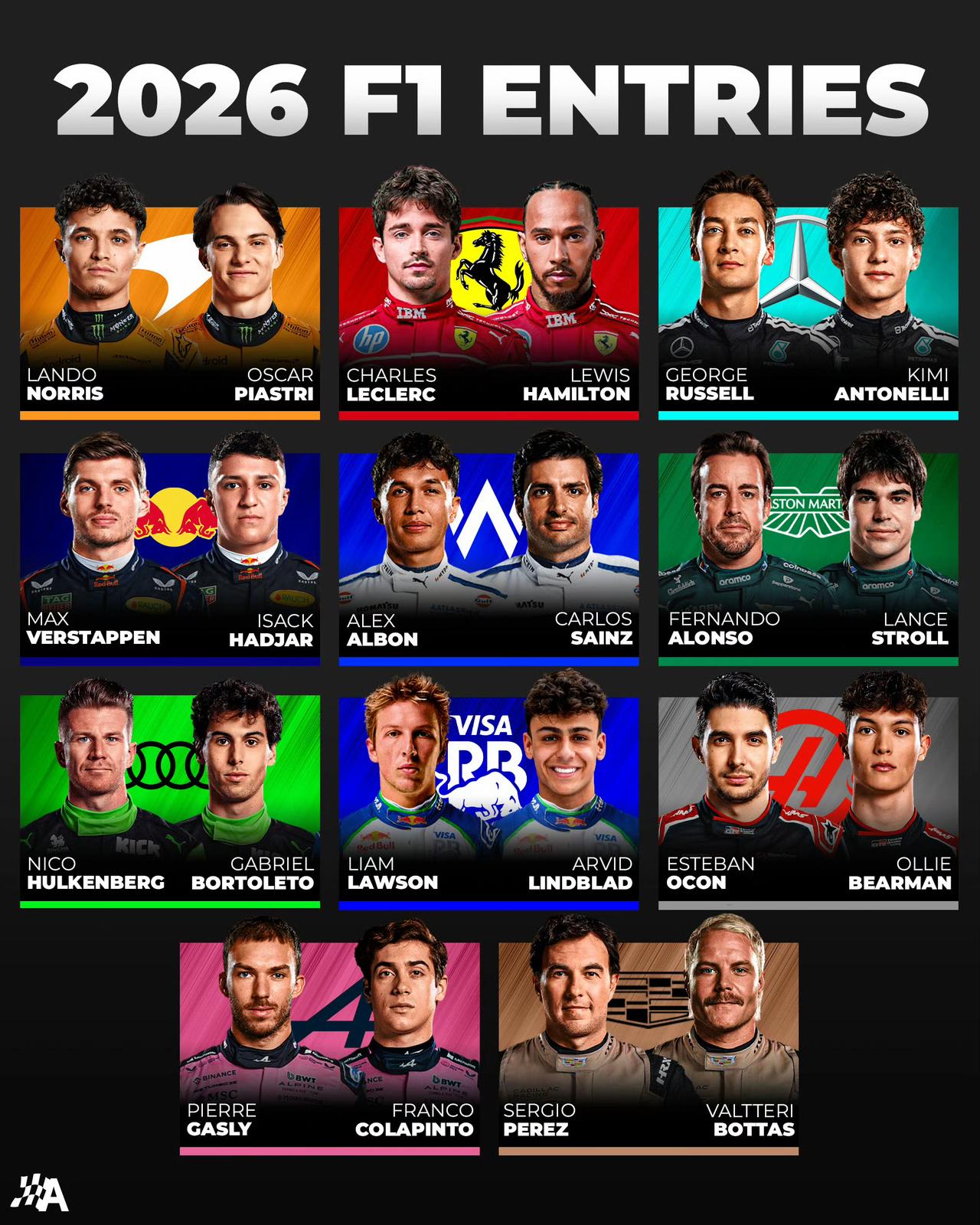 F1 2026赛季最后三个席位定了: -小红牛:劳森+林德布拉德 -大红牛:维斯