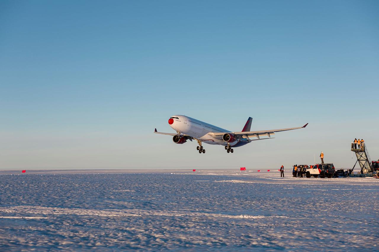 当地时间12月1日,葡萄牙包机航空公司Hi Fly一架空客A330首次在南极洲成功着陆。