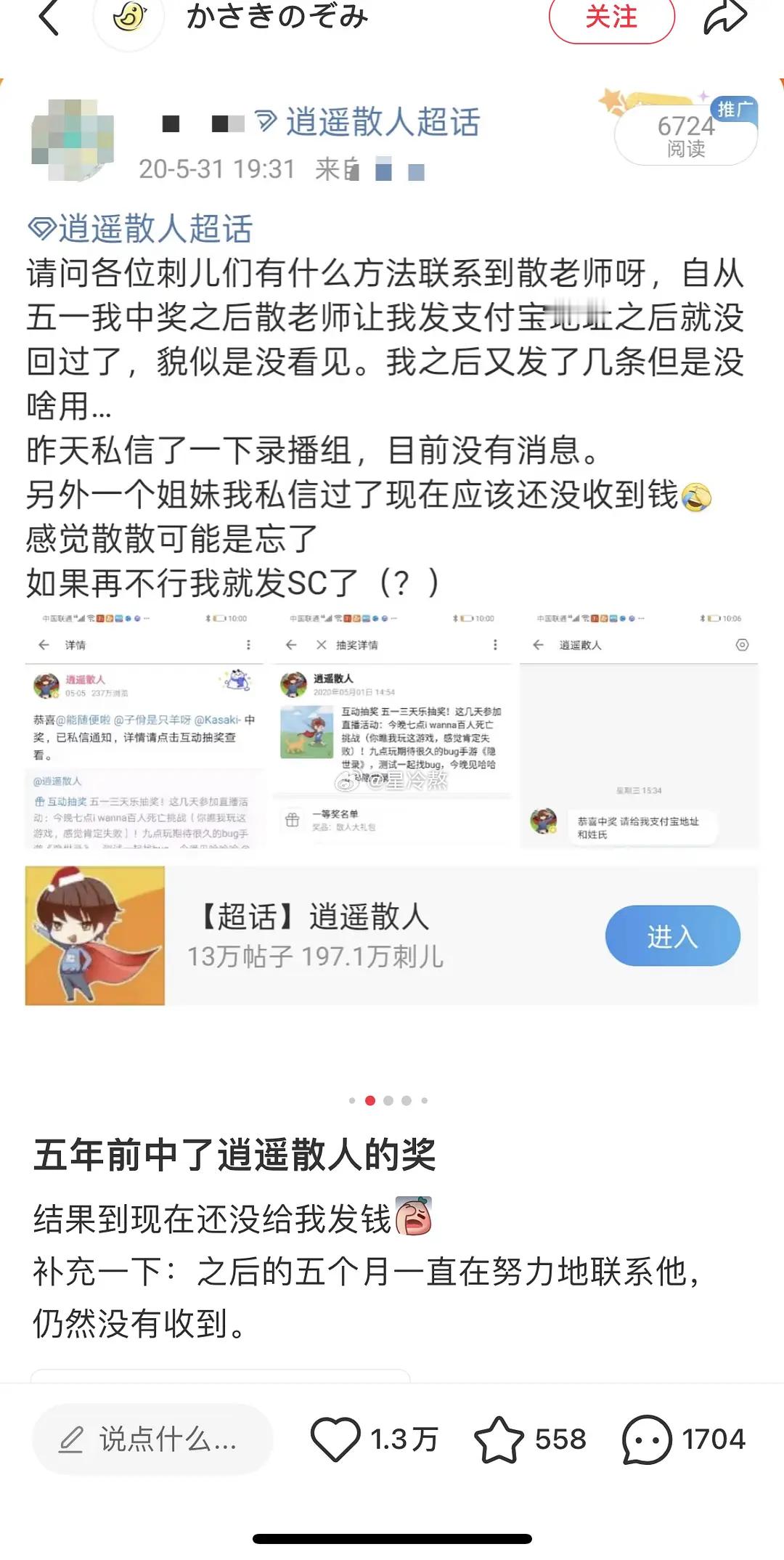 逍遥散人虚假抽奖,受害人一大把……