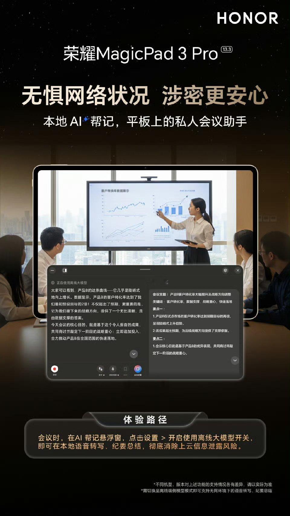 iPad中国市场份额大跌第三季度华为平板继续排名第一。国产平板现在越来越好用了。以华为代表,小米、荣耀等平板的掘起,在流畅、生态等多方面有了长足的进步,给了消费者更多的选择。荣耀MagicPad3Pro的这个无网本地也能语音转写+纪要总结,所有内容本地处理,涉密信息绝不“上网冲浪”挺好的