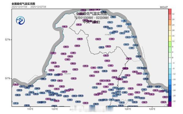 【内蒙古图里河零下38.7度!北方下半年最冷一天 】冷冷冷冷冷!今天早晨,北方多地寒意将加码,最低气温再度刷新今年下半年来新低,东北多地最低气温跌至-20℃。南方气温将由前期的偏高转为偏低,贵州到长江中下游多地最高气温只有10℃上下。(中国天气)