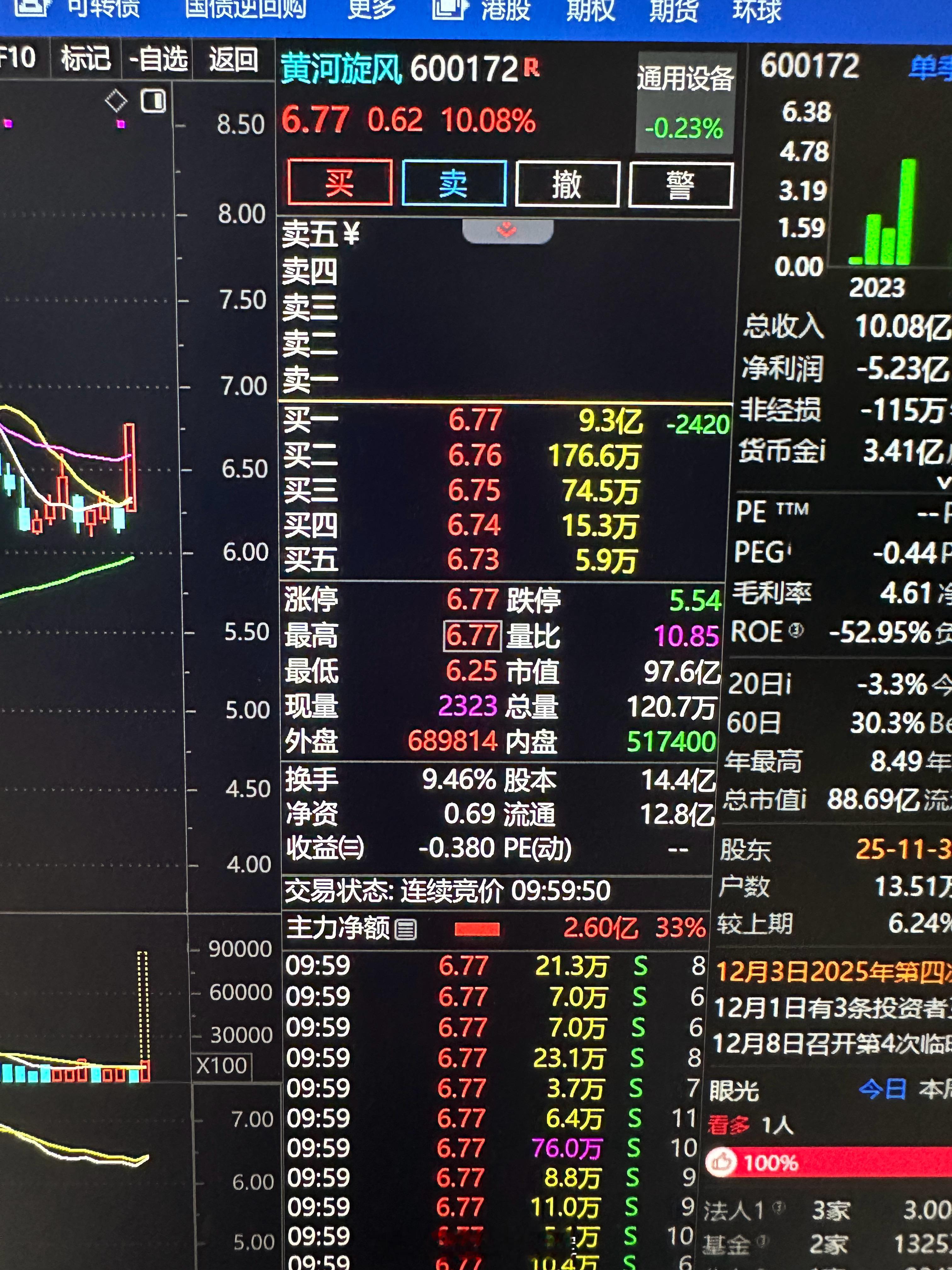 刚刚通知老铁买入的$黄河旋风 sh600172$ 涨停了