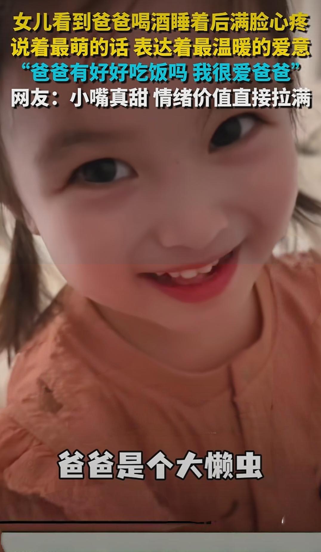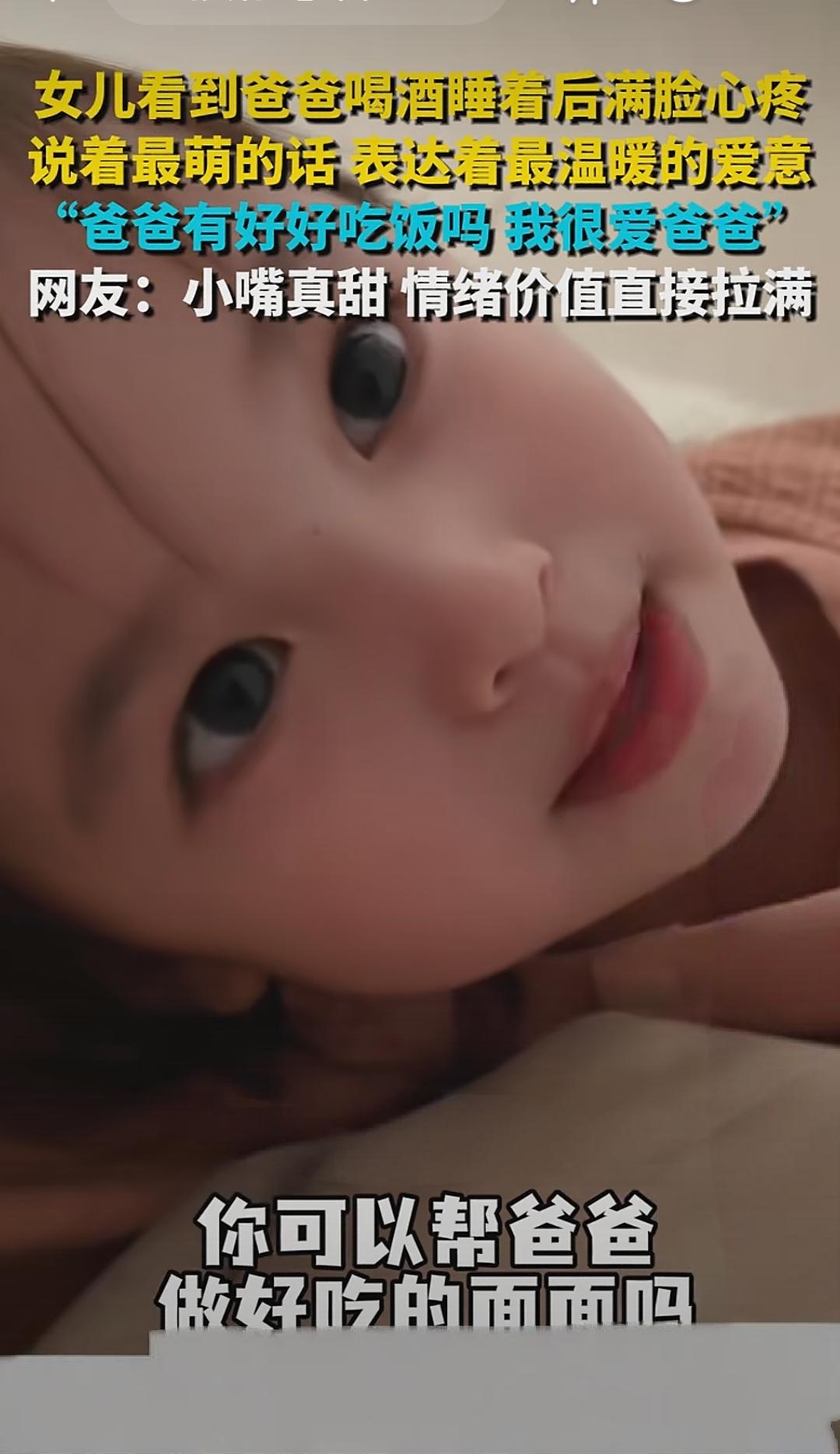女儿看到爸爸喝酒睡着后满脸心疼说着最萌的话 表达着最温暖的爱意“爸爸有好好吃饭吗?” 我很爱爸爸”网友:小嘴真甜 情绪价值直接拉满。 女儿看到爸爸喝酒睡着后,满脸心疼地轻声问:“爸爸有好好吃饭吗?我很爱爸爸。”这简单一句话,却像一股温暖的春风,瞬间融化了无数网友的心。或许有人会觉得,这只是一个普通的家庭瞬间,但细细品味,却藏着深沉的爱与责任。 在这个快节奏、压力山大的社会里,很多父母为了家庭拼搏奔波,却常常忽略了最简单、最真实的情感表达。而这个小女孩,用最纯真的话语,传递出了对父亲最深的关怀。她没有复杂的句子,没有炫耀的词藻,只是一句“我很爱爸爸”,却让无数人为之动容。 网友们纷纷留言:“小嘴真甜,这才是真正的家庭温暖。”也有人说:“这种爱,最纯粹,也最打动人心。”其实,家庭的幸福,往往源自于这些细碎而真实的瞬间。父母为家庭努力工作,孩子用简单的爱去回应,这样的循环,才是最坚不可摧的力量。 但也有人开始反思:我们是否也曾在忙碌中忽略了家人的感受?是否也曾因为工作压力而忽略了那些微小但重要的关怀?也许,我们都应该像这个小女孩一样,用心去感受身边的人,用一句温暖的话语去点亮彼此的心。 这段话,激起了无数人的共鸣。它让我们看到,爱其实很简单,就藏在一句“我很爱你”的背后。它提醒我们,无论生活多么繁忙,都不要忘记关心身边的人。因为,最平凡的爱,才是最伟大的力量。 所以,下一次当你看到父母、孩子、伴侣的时候,不妨也用一句温暖的话语去表达你的关心。也许,就是这样一句话,就能让平凡的日子变得不再平凡。因为,爱,从来都不需要太多的修饰,它只需要一句真心的表达。 这,就是家庭最美的模样,也是我们每个人心中最温暖的那一份力量。让我们都学会用心去感受,用爱去温暖彼此。因为,最简单的关怀,最真挚的情感,才是生活中最珍贵的宝藏。对爸爸说的话