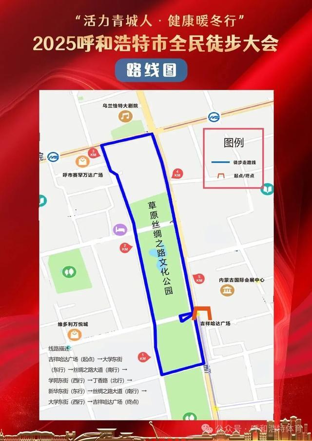 吉祥哈达广场(起点)-大学东街(东行)-丝绸之路大道(南行)-学苑东街(西行)-丁香路(北行)-新华东街(东行)-丝绸之路大道(南行)-大学东街(西行)-吉祥哈达广场(终点)