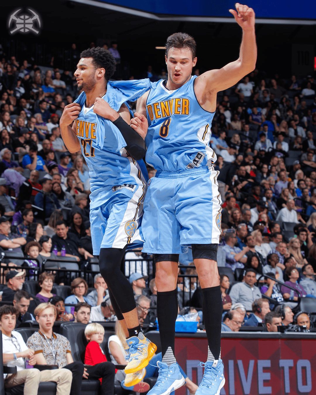 掘金官方今日晒出加里纳利与约基奇和默里的合影,并附文道:一生掘金人!