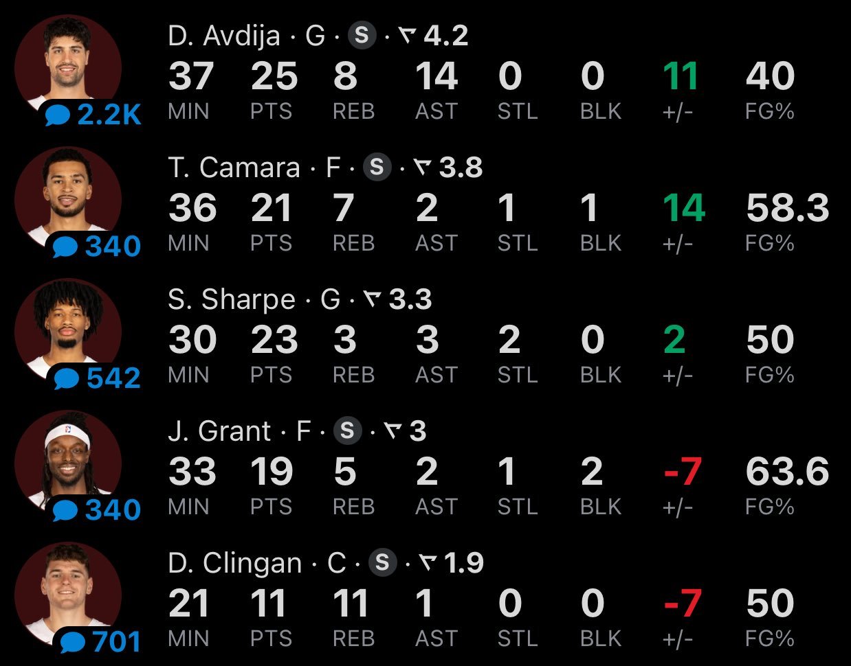 开拓者客场不敌猛龙,遭遇三连败,杨瀚森被DNP。今天是开拓者五连客第一场,如果克林根和罗威都能打,看看小杨后面是不是会被下放。另外,独行侠和快船开季惨成那样,现在距离第10的开拓者也不过是1.5胜场和3胜场(东部第一的活塞领先尼克斯3胜场,西部第一雷霆领先湖人4.5胜场)。开拓者vs猛龙NBA