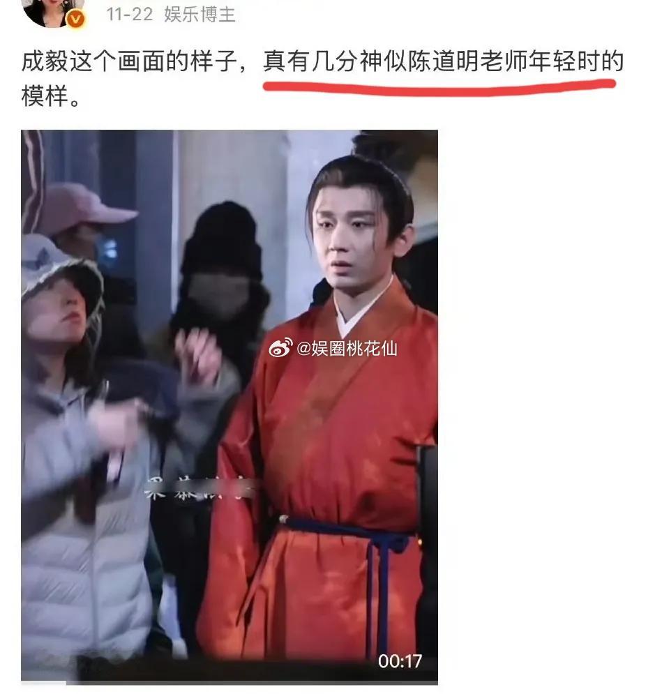 有博主说陈毅有年轻版陈道明的影子!翻了陈道明年轻时的照片,确实清秀俊朗,帅得经年不褪色,尤其《大汉天子》里的东方朔,至今让人印象深刻。成毅在《两京十五日》中饰演太子朱瞻基,同是帝王角色,眉宇间的沉稳与锐气,倒真有几分前辈当年的风骨,这般联想,倒也不算牵强。