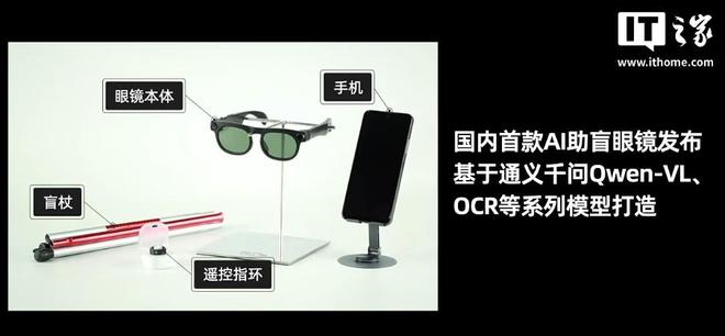 IT之家12月3日消息,据阿里云消息,今日杭州瞳行科技公司正式发布国内首款AI助盲眼镜。该眼镜基于通义千问Qwen-VL、OCR等系列模型,具有出行避障、找物读物、语音助手和一键求助亲友等功能。该眼镜由眼镜主体、手机、遥控指环、盲杖四部分组成,目前已正式面市。