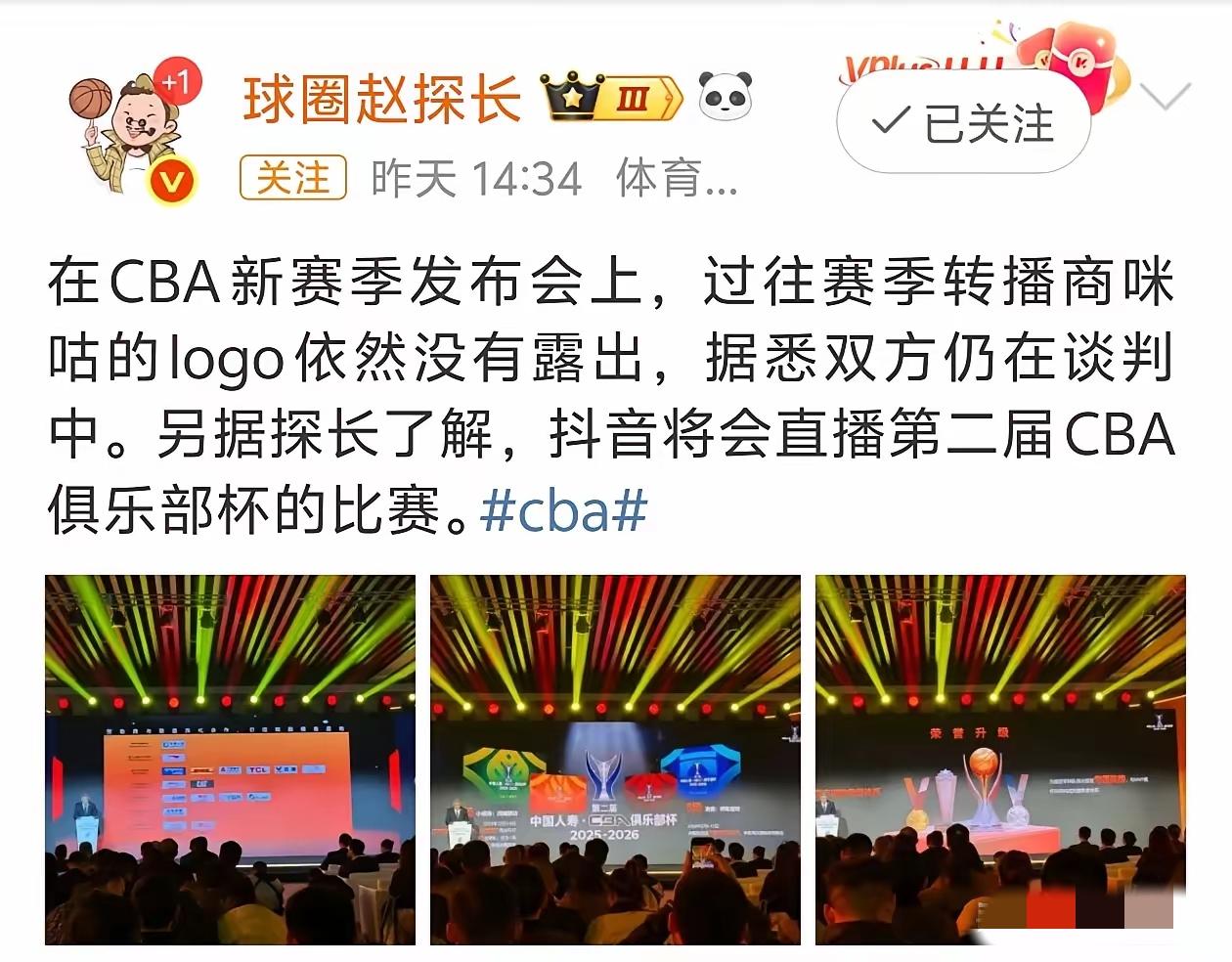 咪咕下午转播俱乐部杯,CBA球迷饥饿感强烈,抖音版本应该被误解 今天下午,CBA俱乐部杯就要开打,由于CBA和CBDL都没有安排季前赛,这事实上也等于场地测试,已经季前赛了,由于太久没有篮球比赛,全运会篮球水平太差,安排在没有CBA球队城市的俱乐部杯,随着外援配齐,球市肯定好很多。 之前说抖音获得版权,但没有组建直播团队,其实就是允许自媒体人,自己进行直播,或者制作大量的视频,这样就免得被CBA处罚的麻烦,所以大家要看球,今天提供高质量直播的,还是咪咕视频,由于比赛从15点开始,到晚上八点,共安排八场球,在四地举办比赛,球迷视频看球的体验,也会比时间紧凑的CBA,要不知道好多少呢? CBA联赛
