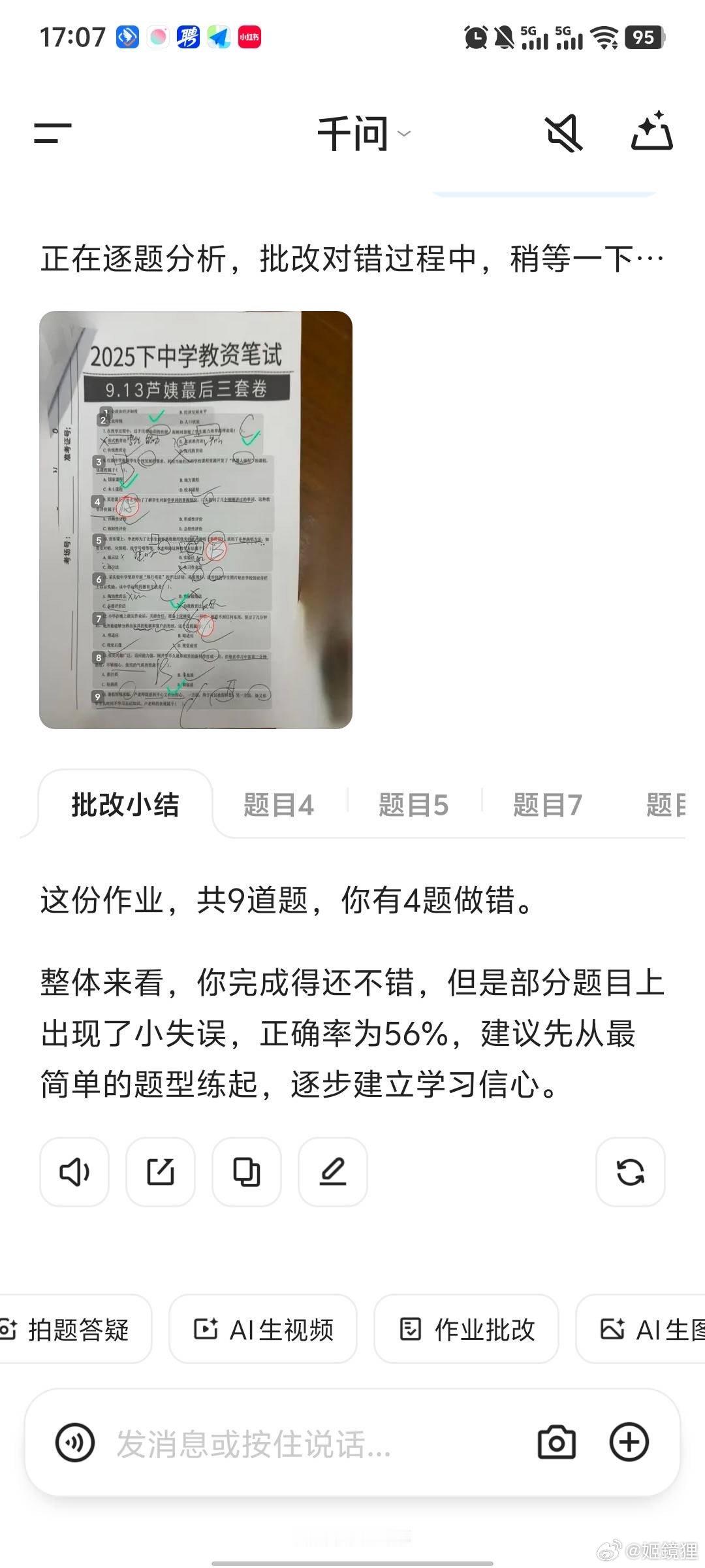 😭我哭了,最近正被娃弄得难受,我去试试千问批改小学生草书作业