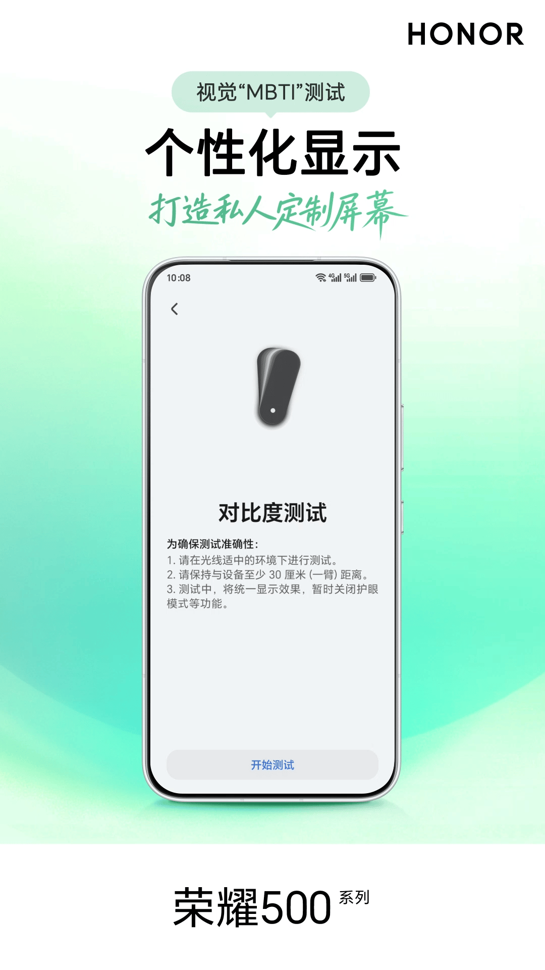 只有适合自己的屏幕显示才好。荣耀500系列这个MBTl测试为个人定制屏幕护眼针不