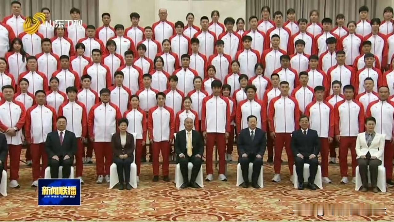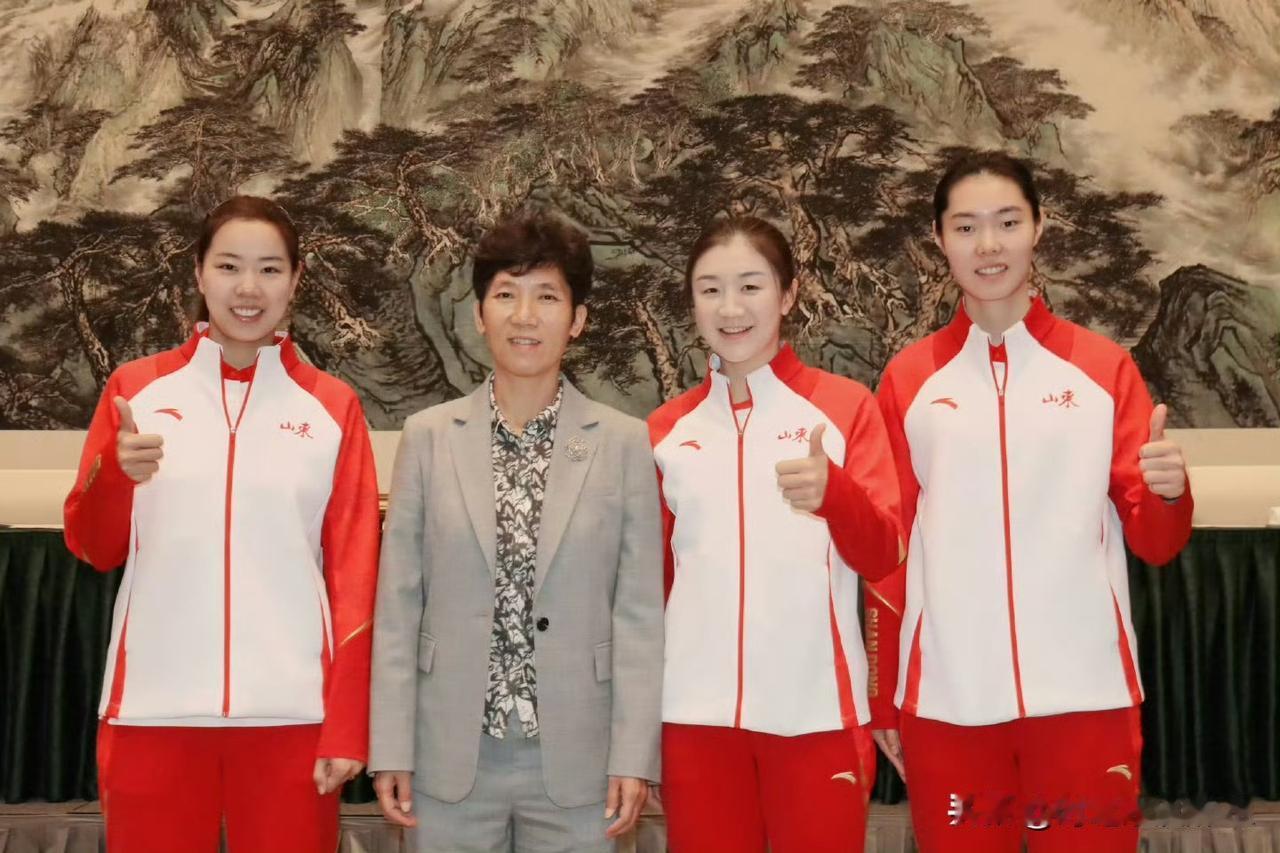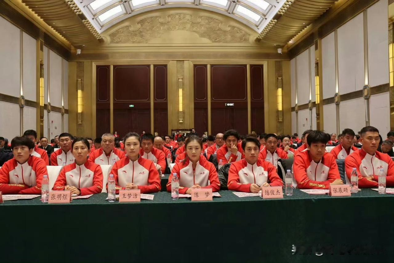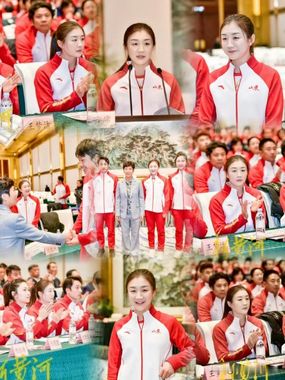 陈梦是C位,边上是练俊杰,旁边是张展硕[赞] 别看陈梦长得柔柔弱弱的样子,但是在赛场上飒爽英姿呀!这次带领山东拿了女团冠军,女单季军,真的很优秀了 这次站C位实至名归,这就是女性的力量,陈梦以后退役之后,在山东工作也挺好的,进娱乐圈也挺好的,毕竟有黄晓明这个表哥[赞]