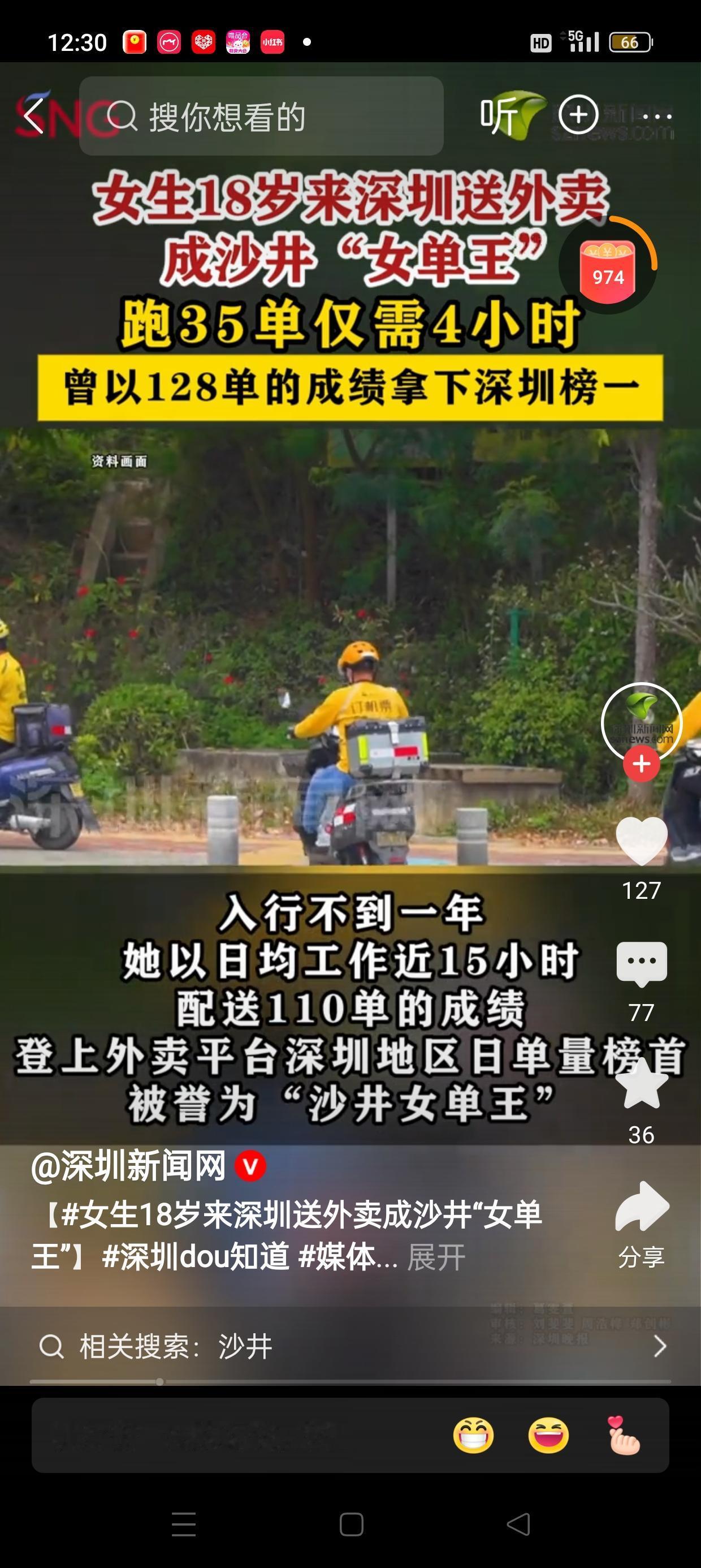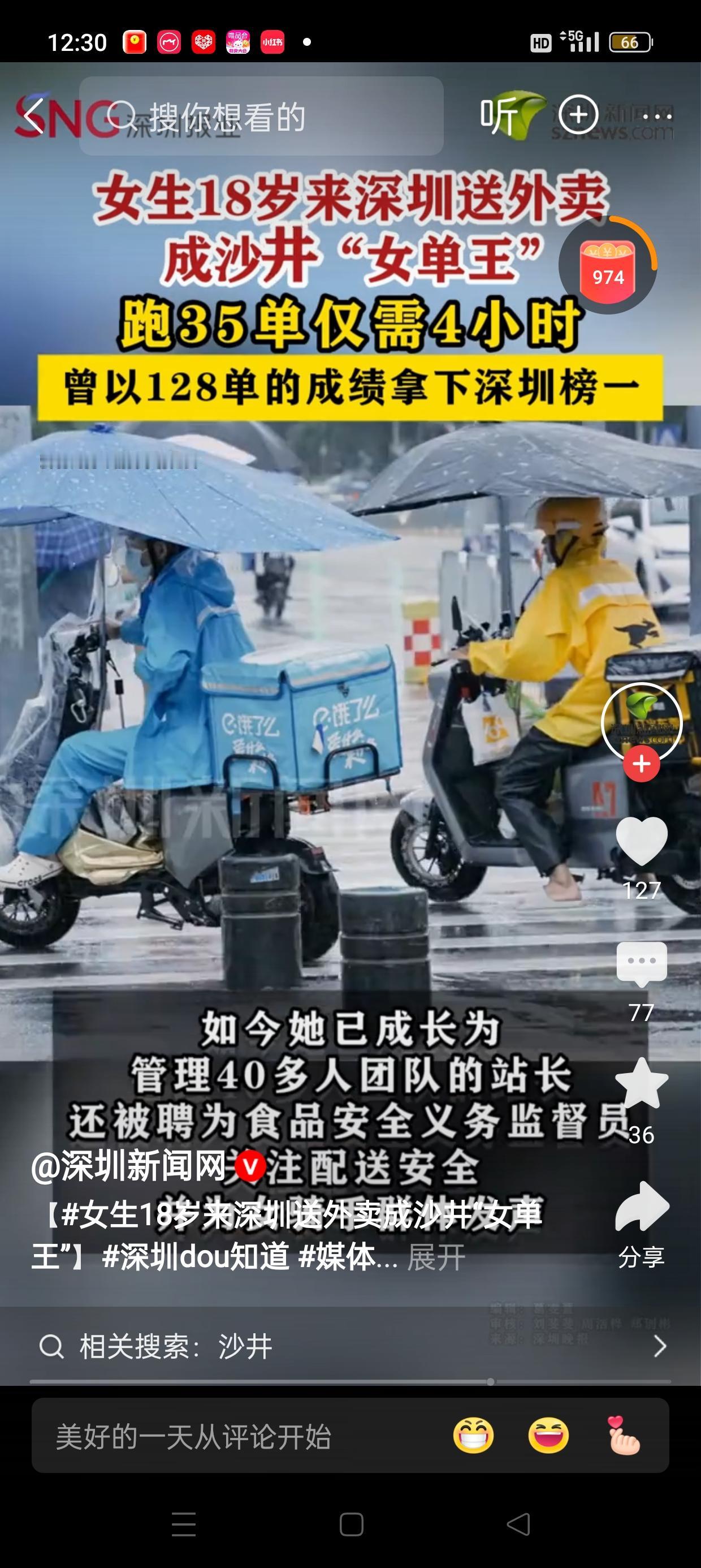 当然可以!以下是一篇以“女孩18岁来深圳送外卖成沙井女单王”为标题的500字左右的吸引力强、内容丰富的文章: 女孩18岁来深圳送外卖,成沙井“女单王”——年轻的拼搏故事 在繁忙的深圳街头,有这样一位年轻女孩,她用自己的努力和坚韧,书写了一段令人敬佩的奋斗故事。她叫李婷(化名),刚满18岁,从家乡来到这座充满机遇与挑战的城市,只身一人开始了外卖配送的生活。 李婷的故事并不罕见,但她的坚持和成长令人动容。刚到深圳时,她面对陌生的环境和激烈的竞争,心中既有期待,也有迷茫。为了生计,她选择了外卖这个行业——一个既灵活又辛苦的职业。每天清晨,她骑着电动车穿梭在沙井的街巷,迎接风雨,迎接每一单订单。 经过几个月的努力,李婷不仅熟悉了沙井的每条街巷,还逐渐赢得了客户的信任。她的服务细心、效率高,慢慢积累了大量的回头客。凭借着优质的服务和坚持不懈的精神,她在“外卖女王”排行榜上名列前茅,被同行们亲切地称为“沙井女单王”。 她的成功不仅仅是个人的荣耀,更是年轻一代拼搏精神的象征。在深圳这样一个充满机遇的城市,许多像李婷一样的年轻人用汗水和努力追逐梦想。她用实际行动证明,年龄不是限制,只要有梦想和坚持,就能在城市中闯出一片天。 如今,李婷已经成为沙井外卖行业的“明星”,她不仅实现了经济独立,也收获了自信和成长。她说:“我希望通过自己的努力,证明年轻人也可以在城市中闯出一片天,不论起点多低,只要坚持,就一定能成功。” 她的故事激励着更多像她一样的年轻人,勇敢追梦,努力拼搏。在深圳这个充满希望的城市,每一个努力的身影都值得尊敬。李婷的故事告诉我们:青春不怕苦,只要坚持,梦想终会照进现实。