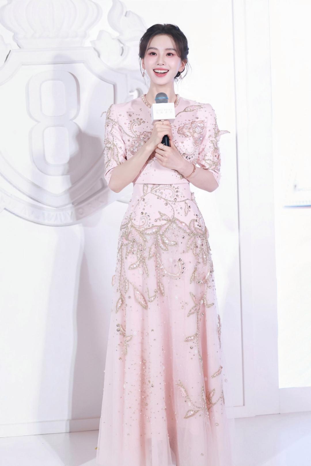 说刘诗诗把“温柔贵气”焊在身上了! 淡粉色长裙缀满水晶刺绣,珍珠领口+同色系耳饰