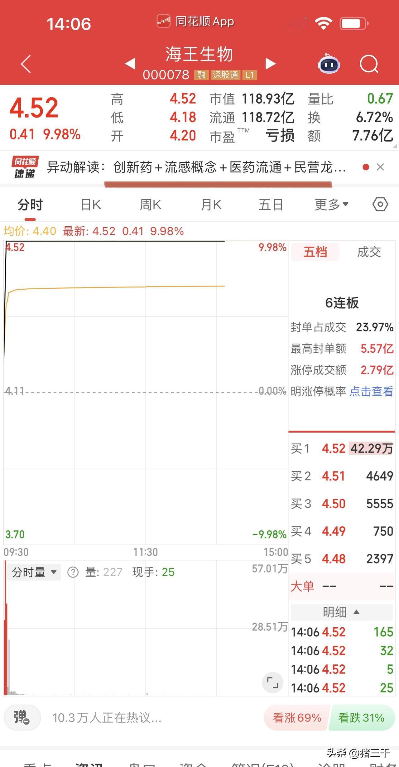 朱雀三号发射成功回收失败! 意料之中的吧, 马斯克猎鹰火箭先后失败了9次, 不气馁再接再厉。 对于商业航天板块来说, 订单放量时间节点推迟, 这个方向短期利好就完全兑现了, 雷科防务、通宇通讯也告一段落。 今天盘面两大看点, 天普股份从小黑屋放出来, 这种走势强弩之末了。 流感概念, 海王生物打出连板气势, 金迪克大阴大阳反复折腾, 能带一带百克生物吗?