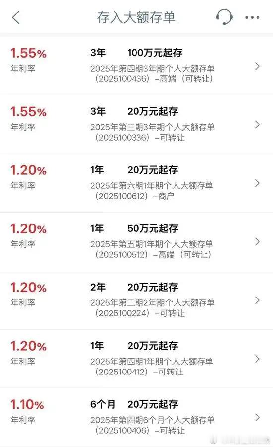 【六大行集体停售5年期大额存单】12月3日,工商银行APP显示,该行正在发售的2025年第四期3年期个人大额存单,起步门槛标注为“100万元起存”,而年利率仅为1.55%。而最新的工行三年期定存产品的年利率,标注为“年利率最高可至1.55%”,而定存的起步门槛仅为50元。目前各银行大额存单期限结构已明显“短期化”,工商银行、农业银行、中国银行、建设银行、交通银行、邮储银行六家国有大行已全面停售5年期大额存单产品,部分股份制银行及城商行也紧随其后收缩长期存款业务。5年期大额存单的退出并非突然之举。以中国银行为例,今年5月20日,中国银行曾在官网公开发布了《关于发售2025年第一期个人大额存单的公告》,包括1个月、3个月、6个月、1年、2年、3年、5年共计七个期限。其中,3年期、5年期大额存单产品利率分别为1.55%、1.6%,但明确标注“仅面向特定客户发售”。工商银行“大额存单”栏目下仅剩余1个月、3个月、6个月、1年、2年、3年六个期限产品。其中,3年期大额存单产品利率为1.55%,1年期、2年期产品利率均为1.20%。在5年期大额存单产品难觅踪影的同时,3年期大额存单产品“缺货”也成为了常态。招商银行大额存单的在售列表中已没有3年期和5年期的选项,普通定期存款1000起存的还有三年期的,利率最高可以达到1.75%。这意味着在息差压力下,银行普遍不愿意吸收成本更高的长期负债,正主动通过下调利率或压缩长期限产品供给来优化负债结构。