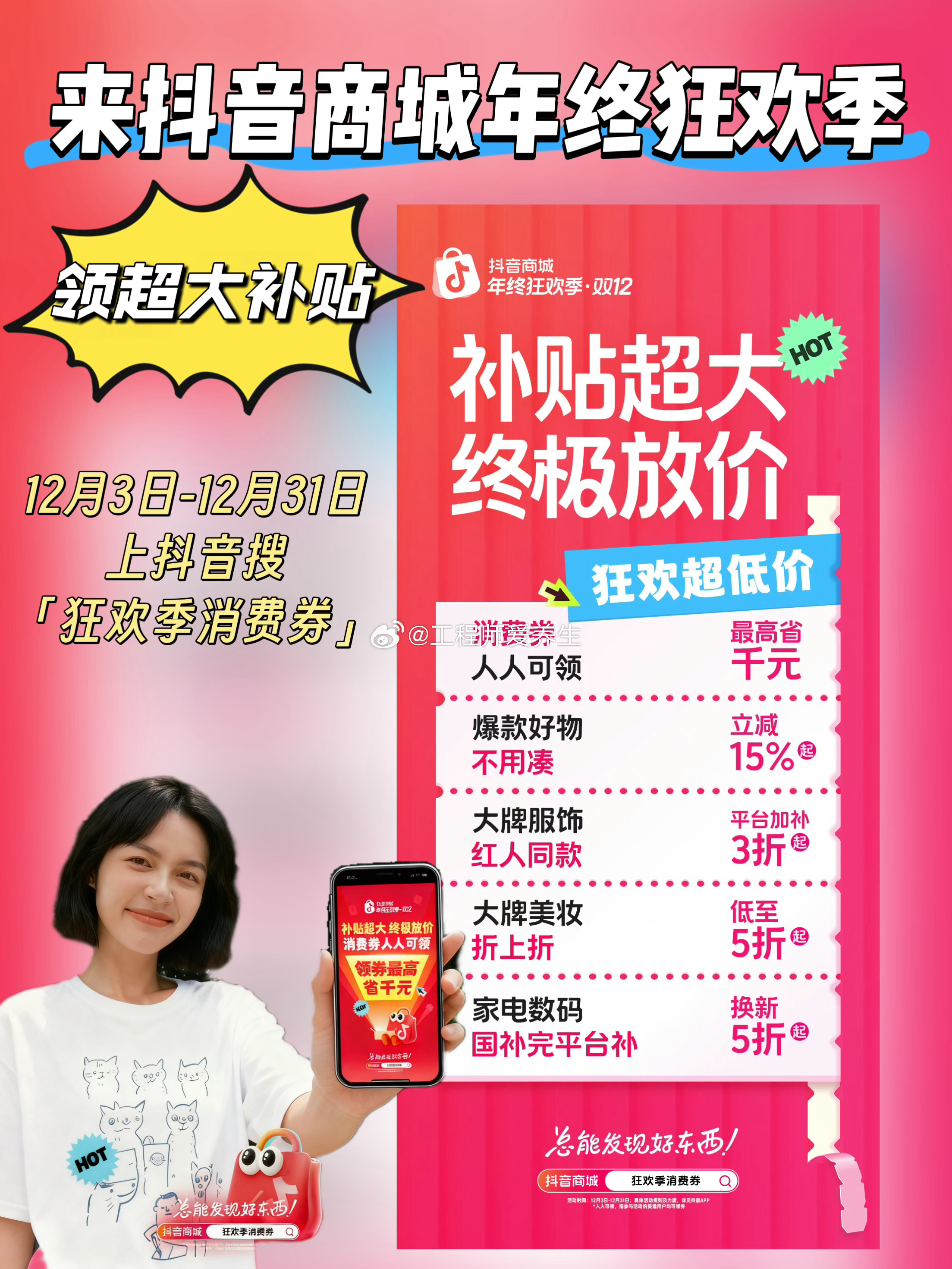 来抖音商城年终狂欢季领超大补贴 🔍抖音商城搜【狂欢季消费券】领券家人们!谁懂啊?!以前总觉得抖音是刷短视频、看直播的地方🌊,没想到今年我的岁末购物“主战场”,竟然悄悄转移到了抖音商城!🛒 尤其是这次轰轰烈烈的 抖音商城年终狂欢季,简直是为我这种既追求品质又想精打细算的“人间清醒”型选手量身定做的!✨🌟🌟🌟🌟🌟故事要从一件躺在购物车许久的lululemon卫衣说起👚。作为打工人,我一直想买件质感好、版型棒的卫衣,既能周末舒适穿,偶尔套个外套也能通勤。它家这款经典款,官网和线下店稳如泰山地挂着1080元💸。我观望了小半年,指望着双11,结果各大平台优惠算到头秃,也不过便宜二三十,还得凑满减,索性放弃😩。就在我几乎要咬牙原价入手时,刷抖音时偶然看到了 “年末终极补好价别错过 ”的话题页!好奇心驱使我点了进去,然后顺手在搜索框输入了活动关键词「狂欢季消费券」。这一搜,仿佛打开了新世界的大门!🚪💡首页赫然显示 “12月3日-12月31日,领券最高省千元” 🎉。我半信半疑地按照指引点了几下,没想到真的领到了一张“大牌服饰专属券”,还有平台通用的满减补贴!抱着试试看的心态,我回到了那件lululemon卫衣的商品页。你猜怎么着?🤩 原价1080元,页面本身就有平台年终补贴价,再叠加上我刚领到的消费券,最后结算时,实付金额竟然显示1020元! 直接省下了60元!💰或许有人会说:“才省60,至于这么开心吗?” 但对我而言,这不仅仅是60元。这是一种 “用更聪明的方式,拥有心仪之物” 的成就感🎯。这60元,是我省去了繁琐比价、拼单凑单的精力成本,是平台直接给到的、看得见的诚意。它足够我喝两三杯品质不错的咖啡,瞬间觉得这件卫衣穿起来会更香了!😆🌟🌟🌟🌟🌟这次体验彻底改变了我对抖音商城的看法。它的抖音商城年终狂欢季活动,有几个特别戳我的点👇✅优惠直接,拒绝套路 🚫不用烧脑计算“跨店满减”,而是“大额消费券人人可领”+“立减15%起”。对我这种数学不好的人来说太友好了!活动页面写得明明白白,大牌服饰3折起、美妆5折起,家电数码还有“国补+平台补”的双重buff,确实是“终极放价”💥。✅品类齐全,宝藏满满 🏆我顺便逛了逛,发现从冬季急需的羽绒服🧥、数码人垂涎的电子产品📱,到年底犒劳自己的美妆套装💄、准备年货的时令生鲜🍓…几乎覆盖了所有年末需求。它不再只是一个冲动消费的场景,而是可以静下心来“逛商城”的地方。✅时机完美,收官之惠 ⏰12月本来就是总结和犒赏自己的月份。这次活动从12月3日持续到31日,完美覆盖了整个年末,被称为 “岁末收官福利” 再合适不过。感觉像是在年前,平台把所有“库存”的补贴火力集中释放,帮助我们 “把整年的期待都装满购物车” 🛍️。🌟🌟🌟🌟🌟我的“薅羊毛”小攻略也分享给大家📝✅ 第一步:直接上抖音搜「狂欢季消费券」,把能领的券都领一遍,反正不花钱!👈✅ 第二步:去购物车清点一下你的“年度心愿清单”📋,看看哪些大件刚好契合“大牌服饰”、“数码家电”等核心补贴品类。✅ 第三步:大胆比价!可以同时打开其他购物APP,你会发现抖音商城补贴后的价格,在很多品类上真有惊喜。🔍✅ 第四步:关注喜欢的品牌官方账号或旗舰店,有时会有直播专属券或秒杀,叠加平台消费券,优惠力度可能更大!🔥🌟🌟🌟🌟🌟以前觉得“省到就是赚到”是句口号,现在在抖音商城,它是实实在在的快乐😄。那件省下60元的lululemon卫衣已经到手了,品质一如既往,但穿上时多了一份“我真会买”的小得意💃。年终了,辛苦了一年的你,也值得用更实惠的价格,拥抱一份心仪的礼物🎁。赶紧上抖音,参与抖音商城年终狂欢季吧!解锁年终最省姿势,把这份“盛惠”和满足感,一起打包带回家!🚀✨