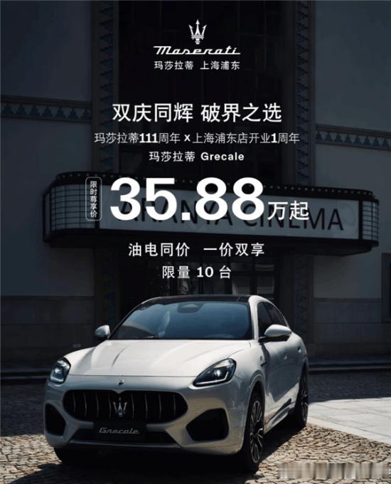 玛莎拉蒂大降价,老车主破防:86万买的 现在成骨折价近日,“玛莎拉蒂大降价”的话题,引起关注热议。多地玛莎拉蒂4S店发布的海报显示,“玛莎拉蒂Grecale(格雷嘉新能源)售价35.88万起。”而格雷嘉新能源为玛莎拉蒂首款纯电SUV,外观与燃油版完全一致,配备105千瓦时的宁德时代电池组,CLTC工况下纯电续航里程达533公里。车辆指导价为89.88万元,此次4S店相当于降价54万元促销,已属4折的骨折价。对此,有Grecale车主向媒体吐槽称,“你让我们老车主的脸往哪搁?自己当初买车就是看重它颜值高、动力强,开出去也有面子。”“即使没有优惠也选择购买,落地价格接近86万元,结果没想到还没开几年,一个超豪华品牌这么不抗打,终端价格已经崩到如此地步。”目前,玛莎拉蒂在国内共有9款车型在售,但无一例外,因为销量不佳,多数车型都有巨额优惠。即便是玛莎拉蒂总裁,入门版也有40多万元的优惠空间,终端裸车价已进入100万元以内。不过,玛莎拉蒂以价换量对豪华品牌来说,无异于饮鸩止渴。在2022年—2024年,玛莎拉蒂在中国市场的销量逐年下滑,分别为4680辆、4367辆和1209辆。今年1—9月,玛莎拉蒂的中国进口销量为1023辆,同比下滑3%,销量与价格已同时告急。