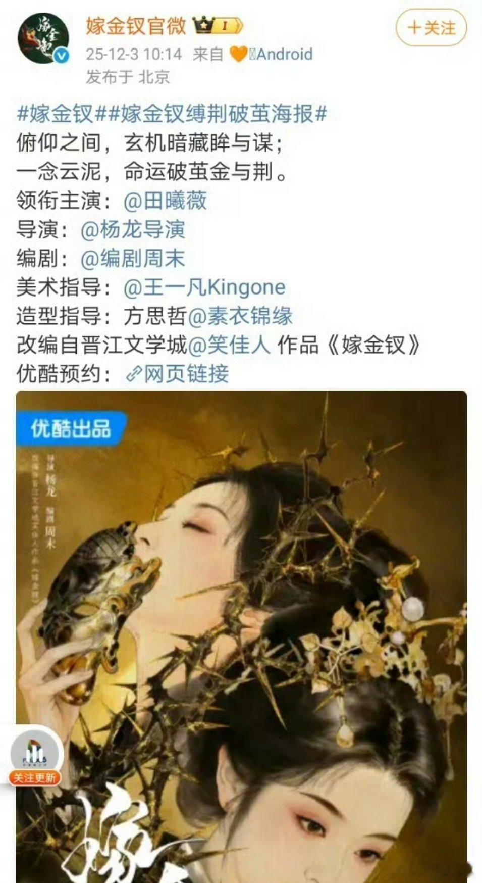 田曦薇 官宣嫁金钗!!卡点生日,单人首位官宣!排面拉满啦 嫁金钗官宣了田曦薇